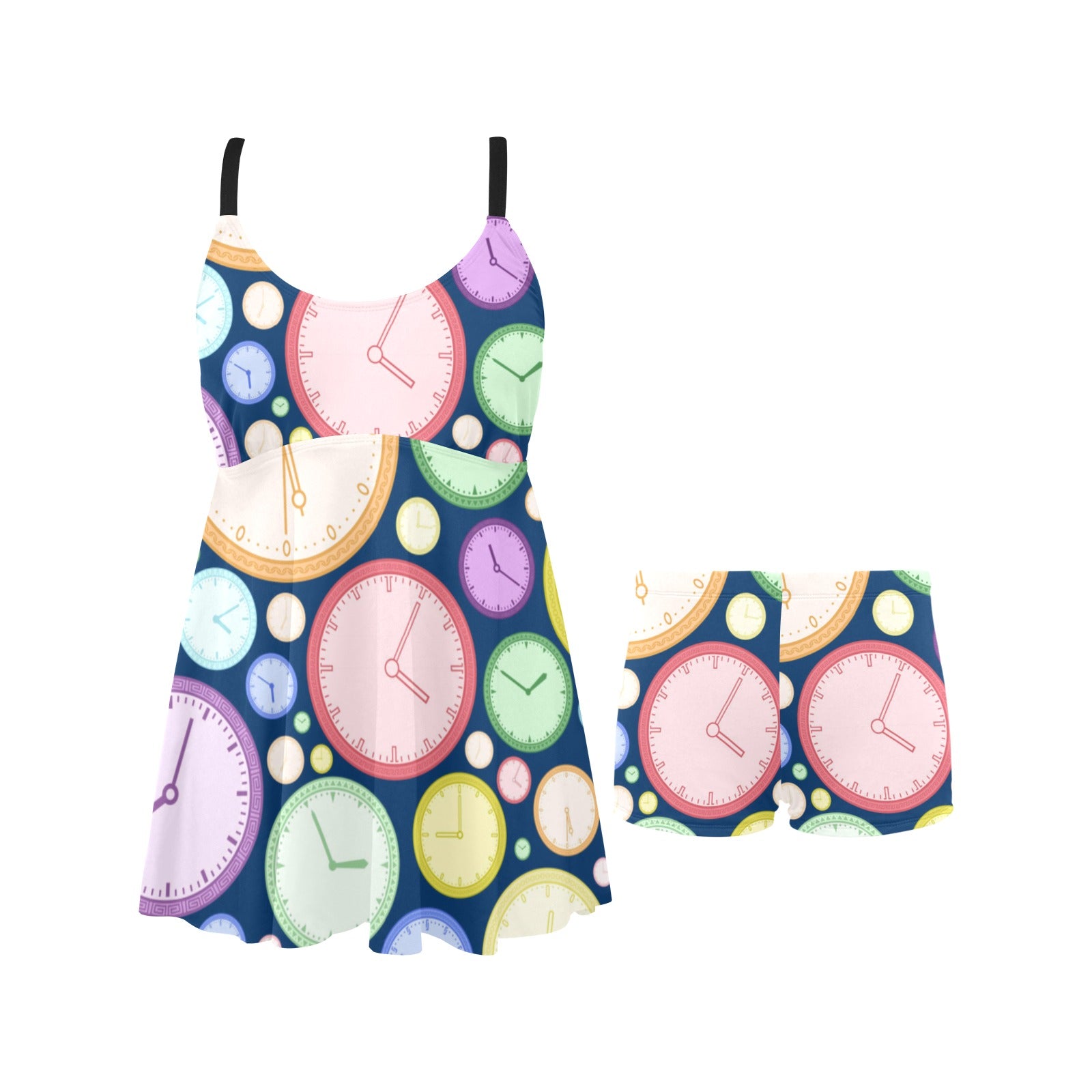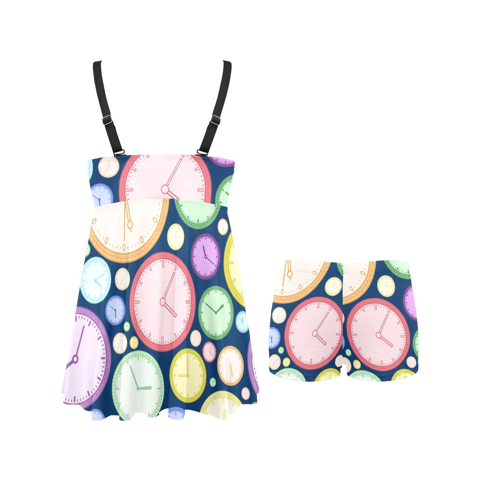 Colorful clock background Chest Sexy Pleated Two Piece Swim Dress