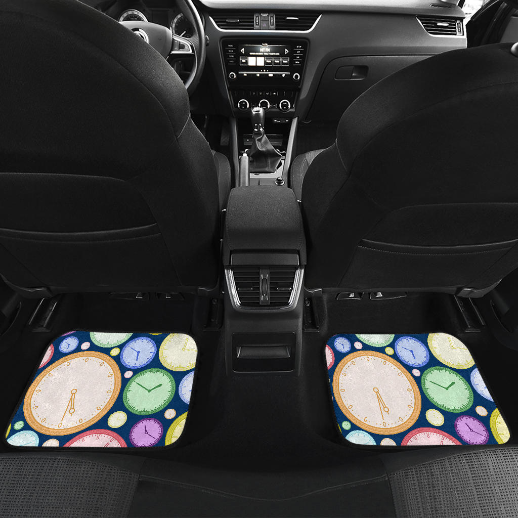 Colorful clock background Front and Back Car Mats are uniqued design and limited item. It made to order, hand printed, and sewn with love in our factory.