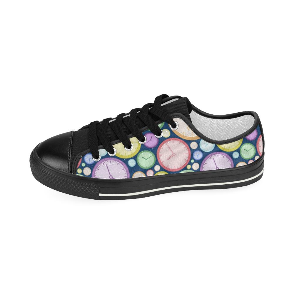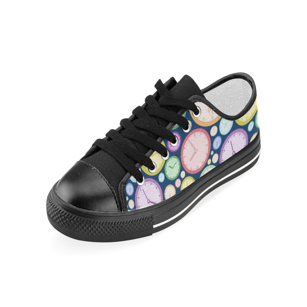 Colorful clock background Kids' Boys' Girls' Low Top Canvas Shoes Black