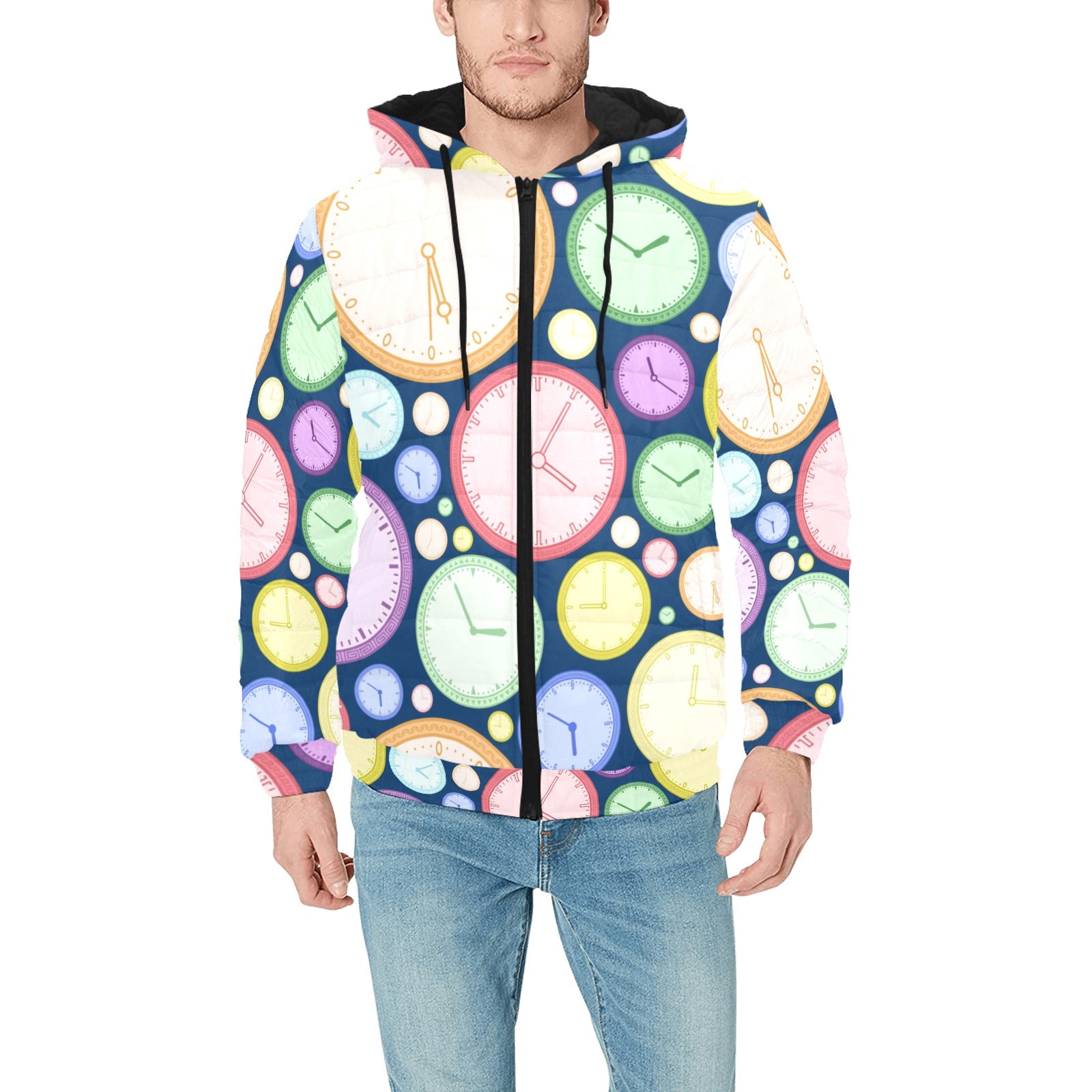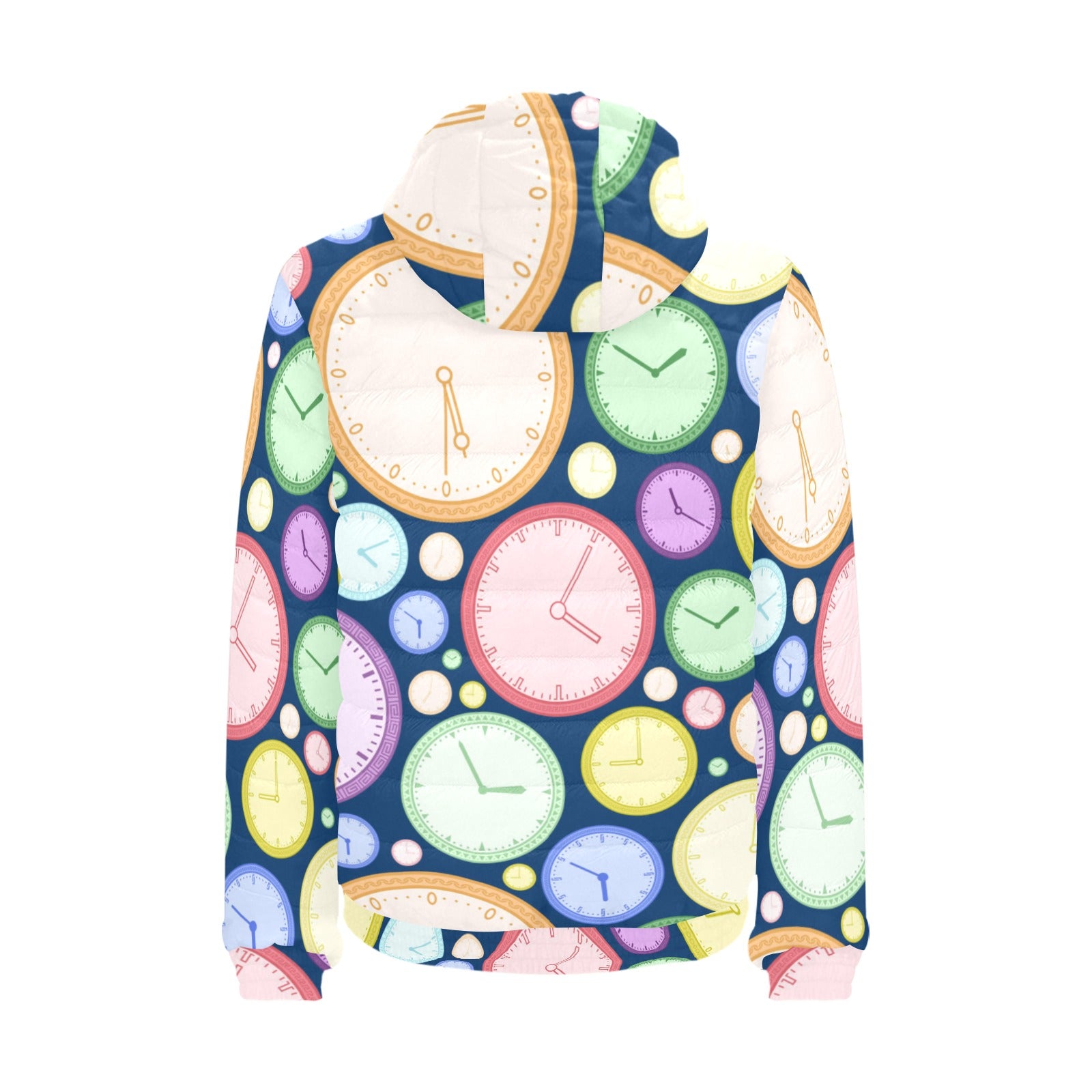 Colorful clock background Men's Padded Hooded Jacket