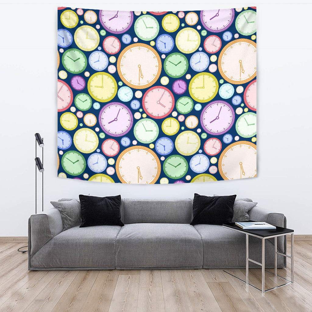 Colorful Clock Background Wall Tapestry