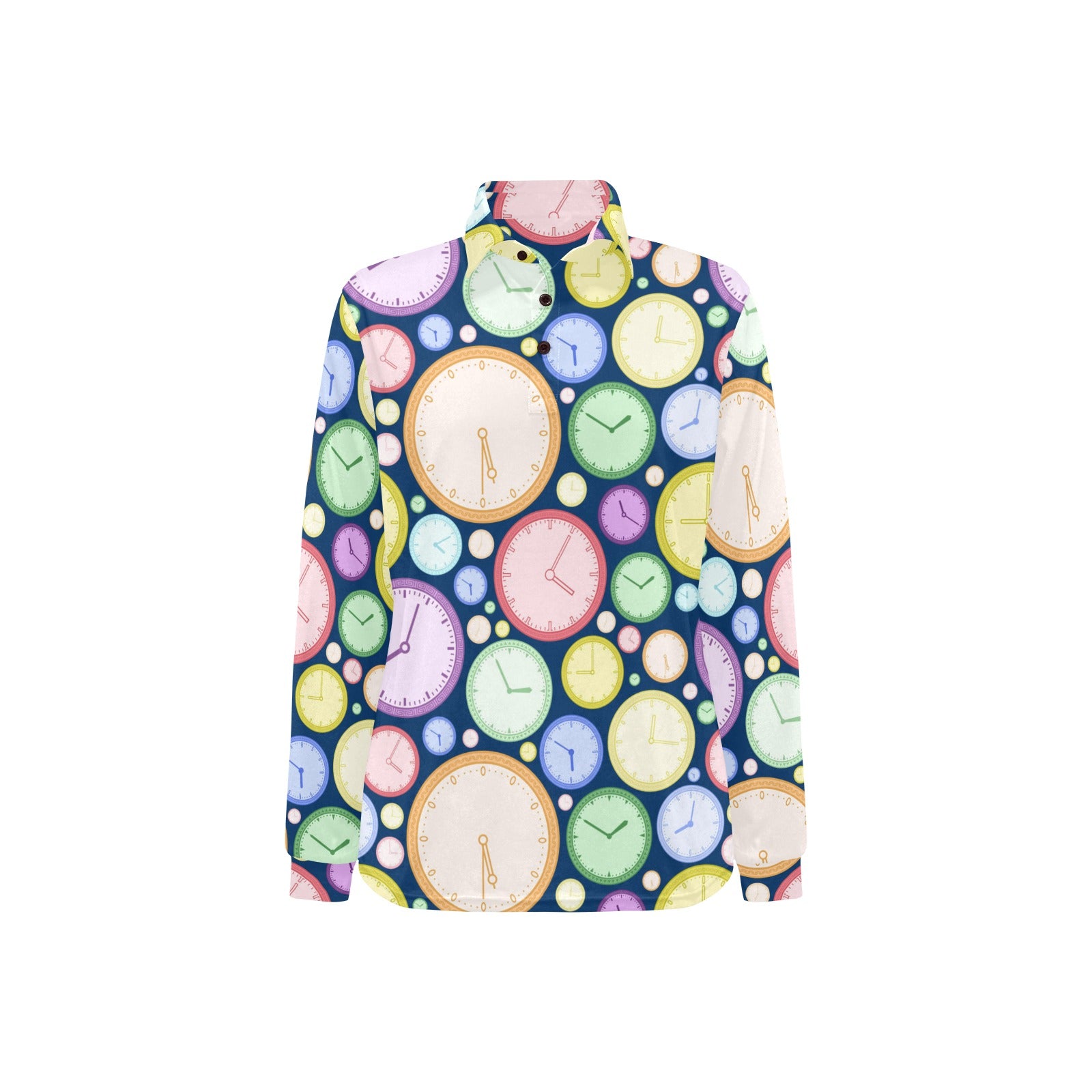 Colorful clock background Women's Long Sleeve Polo Shirt