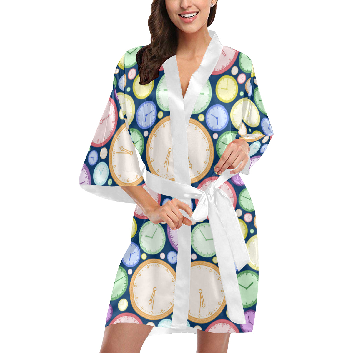 Colorful clock background Women's Short Kimono Robe is a uniqued design and limited item. It made to order, hand printed, and sewn with love in our factory.