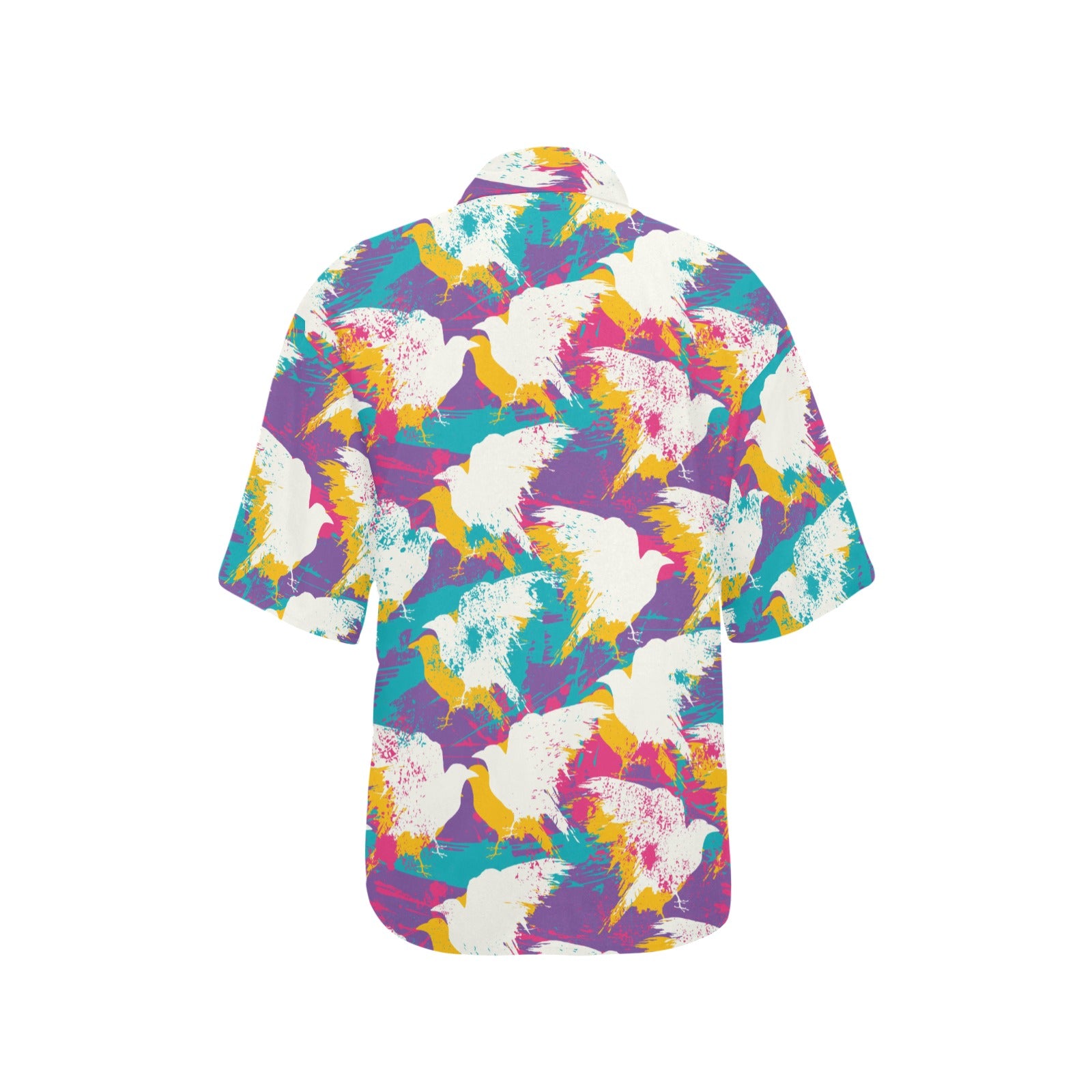 Colorful crow illustration pattern Women's All Over Print Hawaiian Shirt