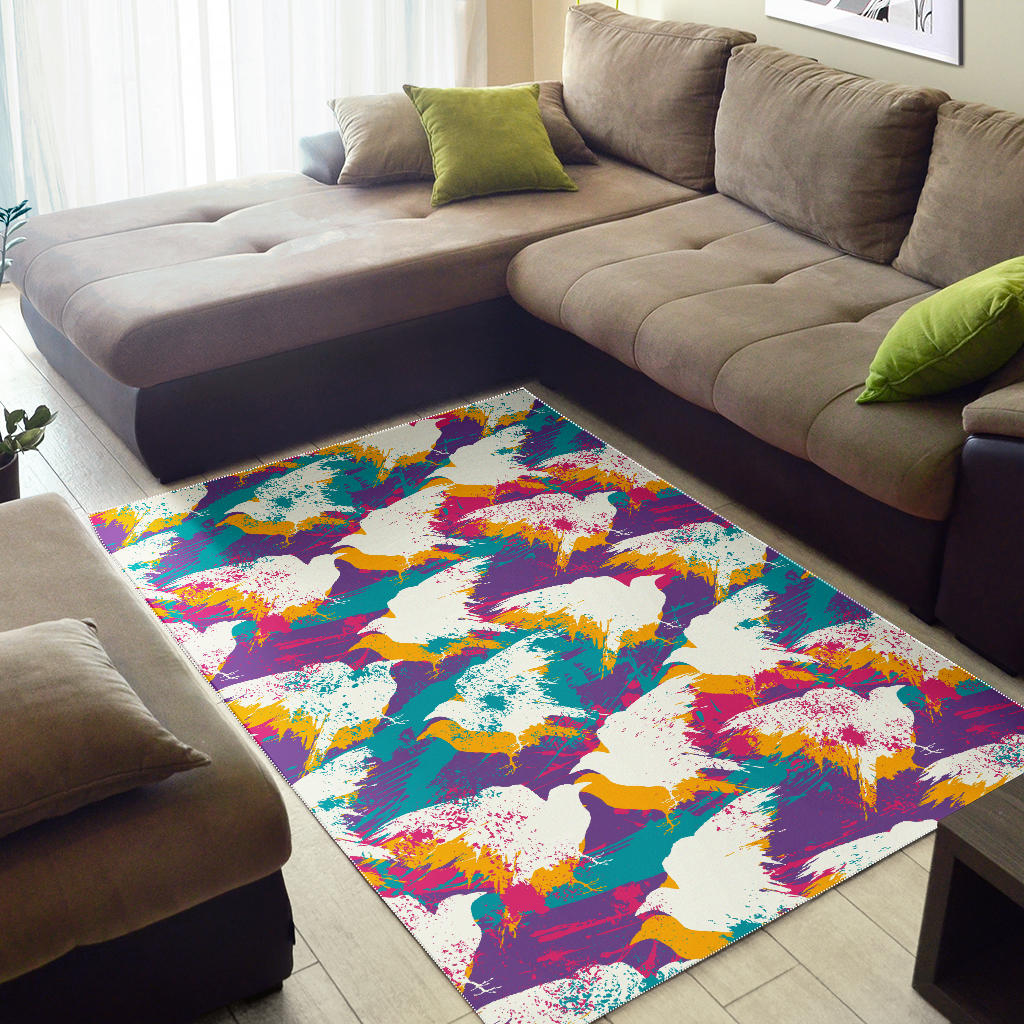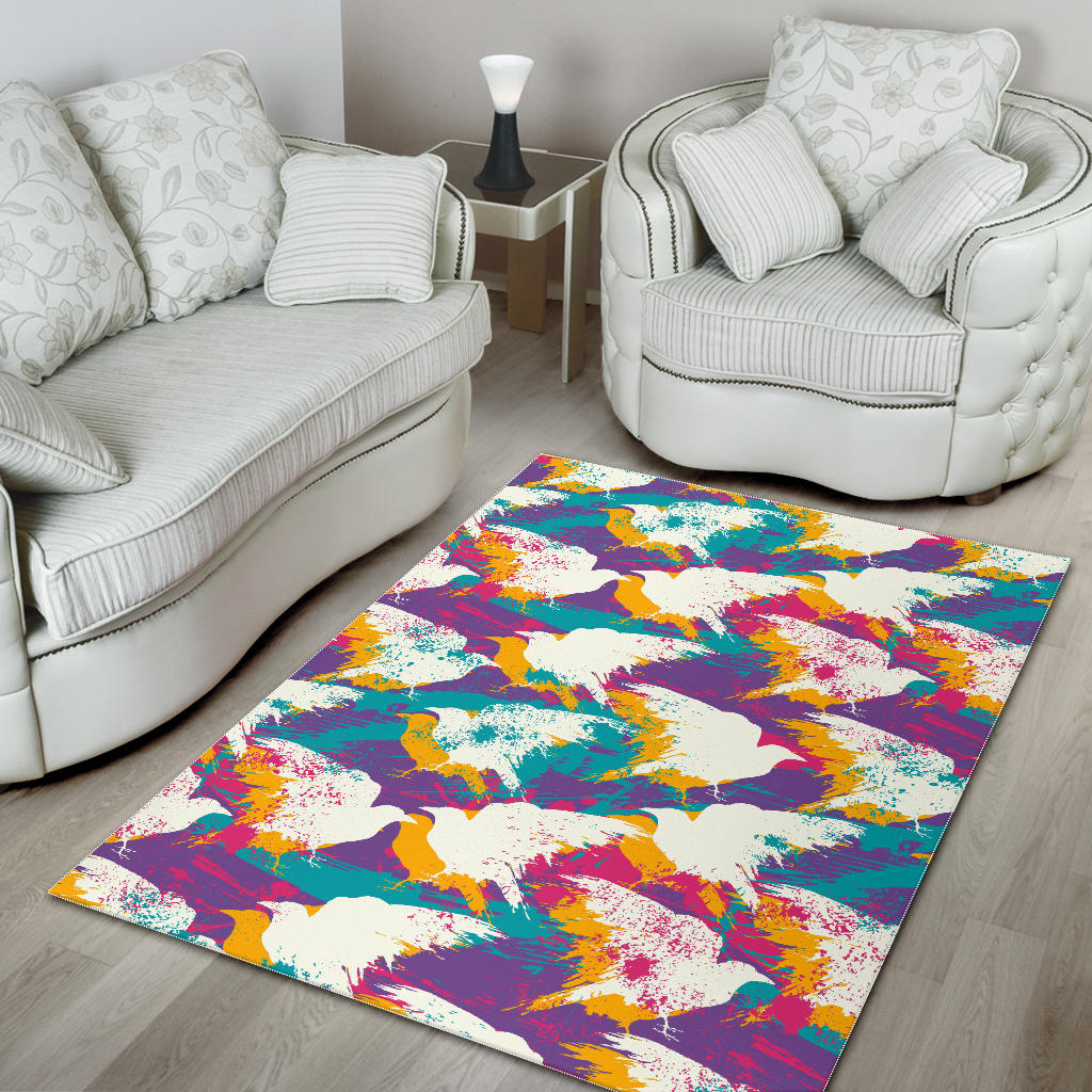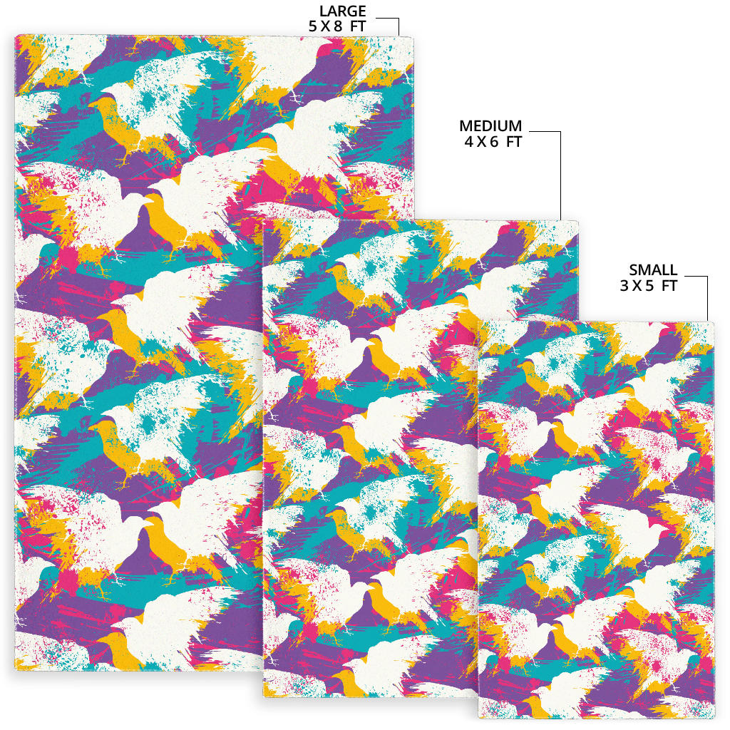 Colorful crow illustration pattern Area Rug is a uniqued design and limited item. It made to order, hand printed, and sewn with love in our factory.