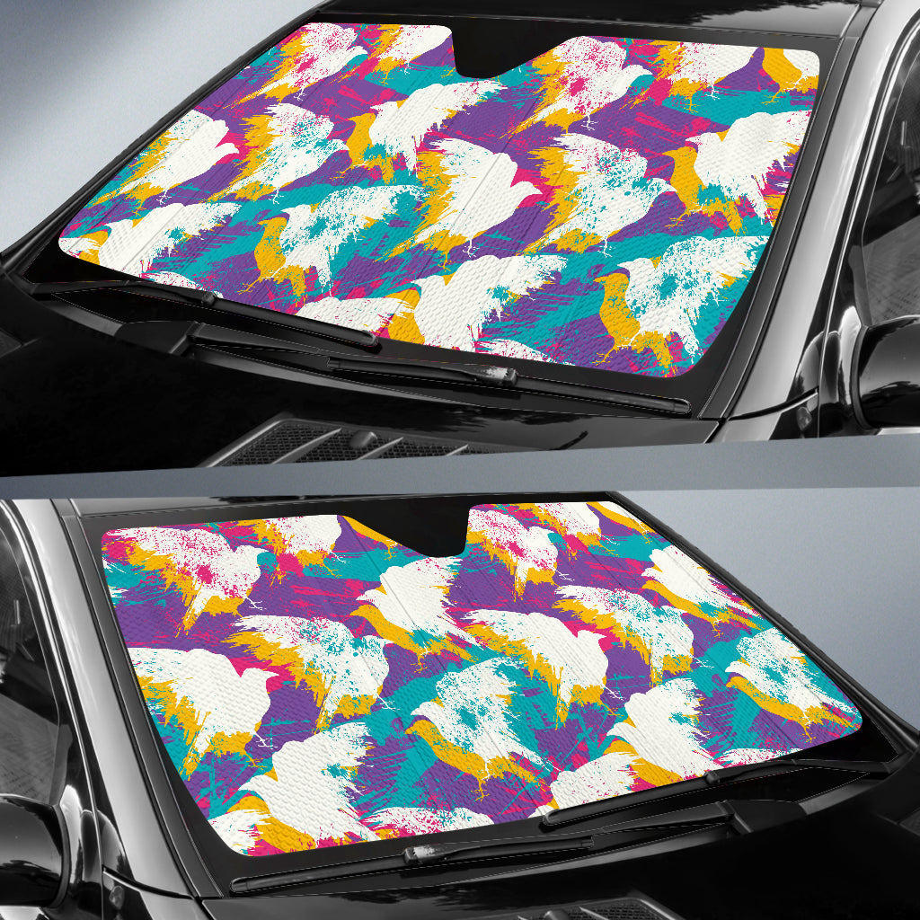 Colorful crow illustration pattern Car Sun Shade is a uniqued design and limited item. It made to order, hand printed, and sewn with love in our factory.