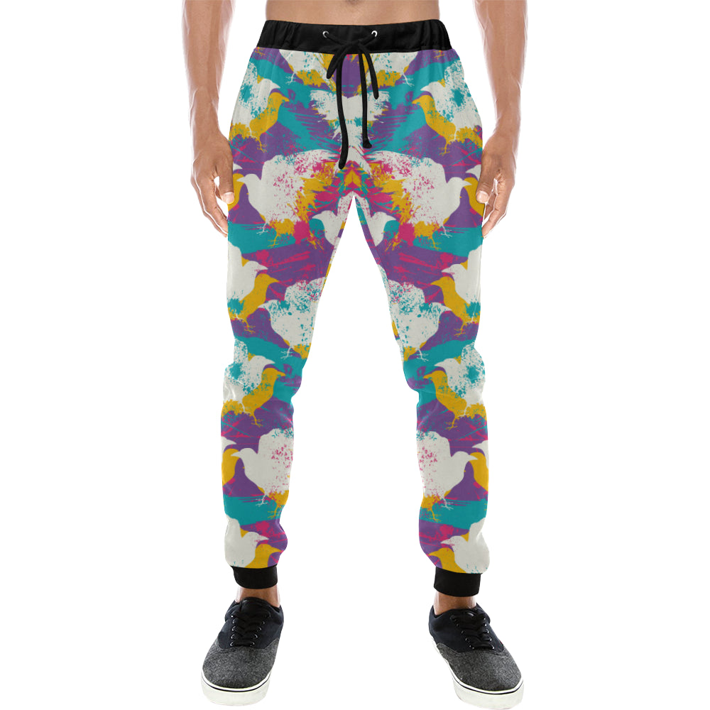 Colorful crow illustration pattern Unisex Casual Sweatpants