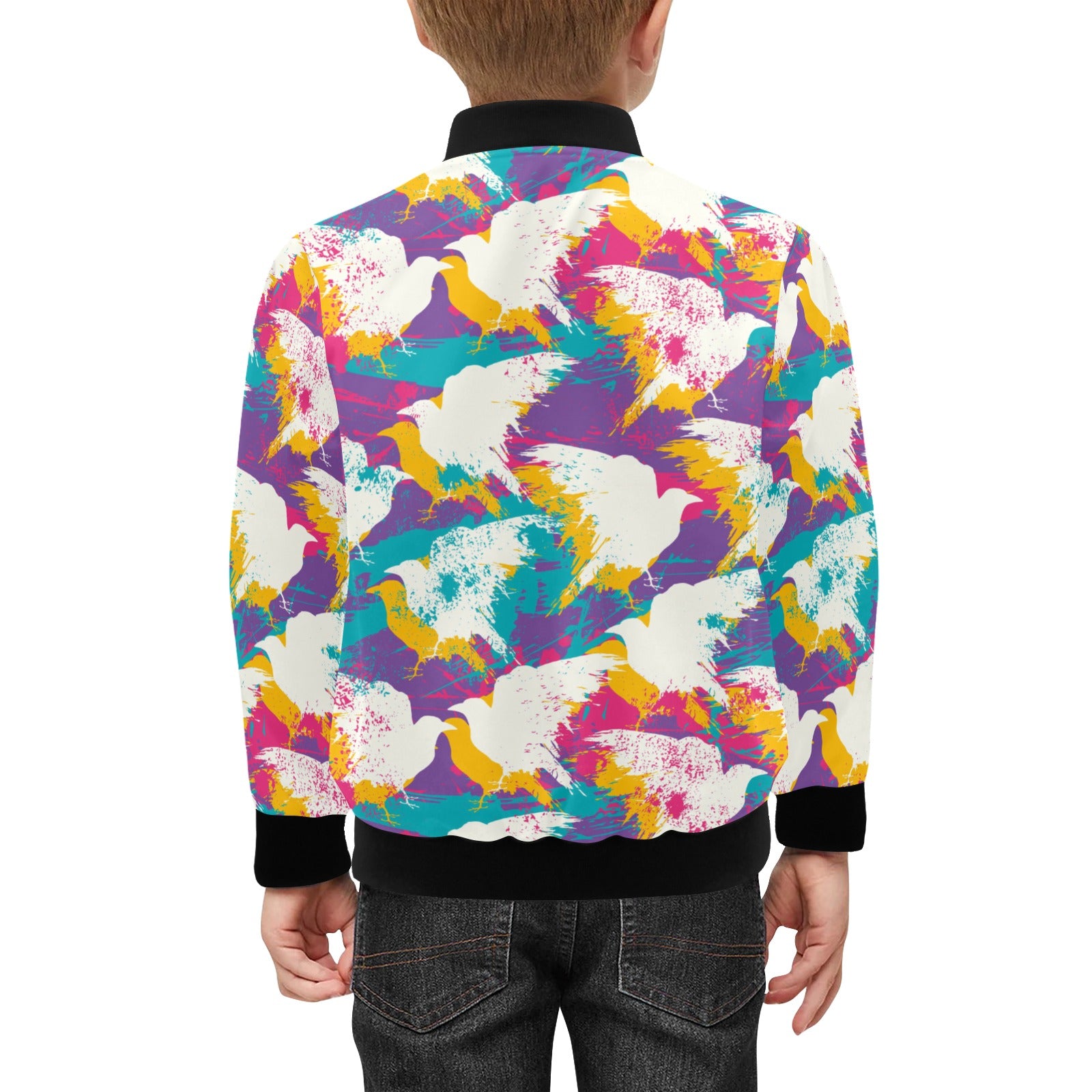 Colorful crow illustration pattern Kids' Boys' Girls' Bomber Jacket