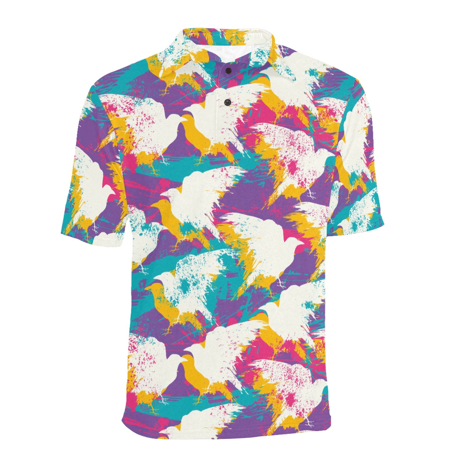 Colorful crow illustration pattern Men's All Over Print Polo Shirt