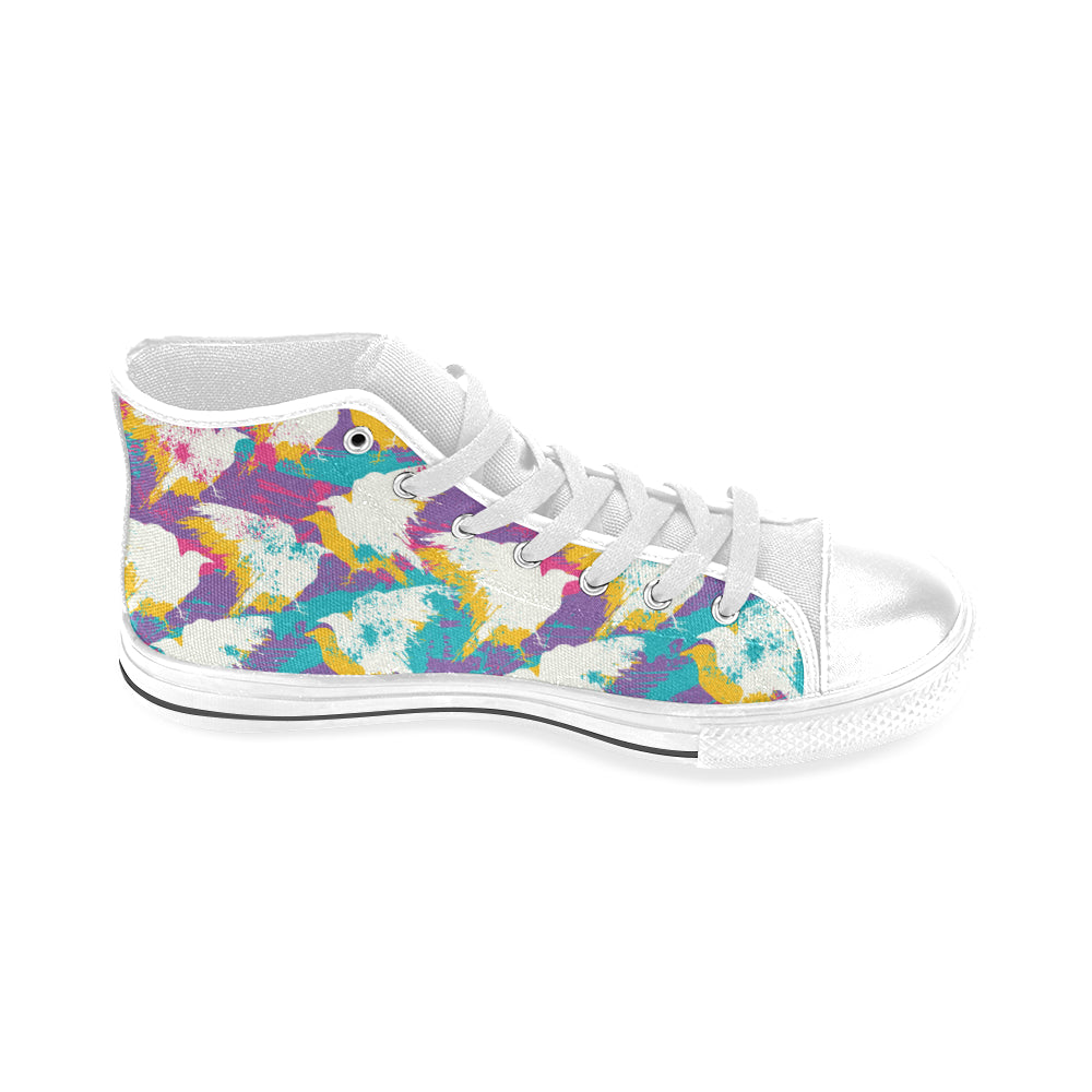 Colorful crow illustration pattern Men's High Top Canvas Shoes White