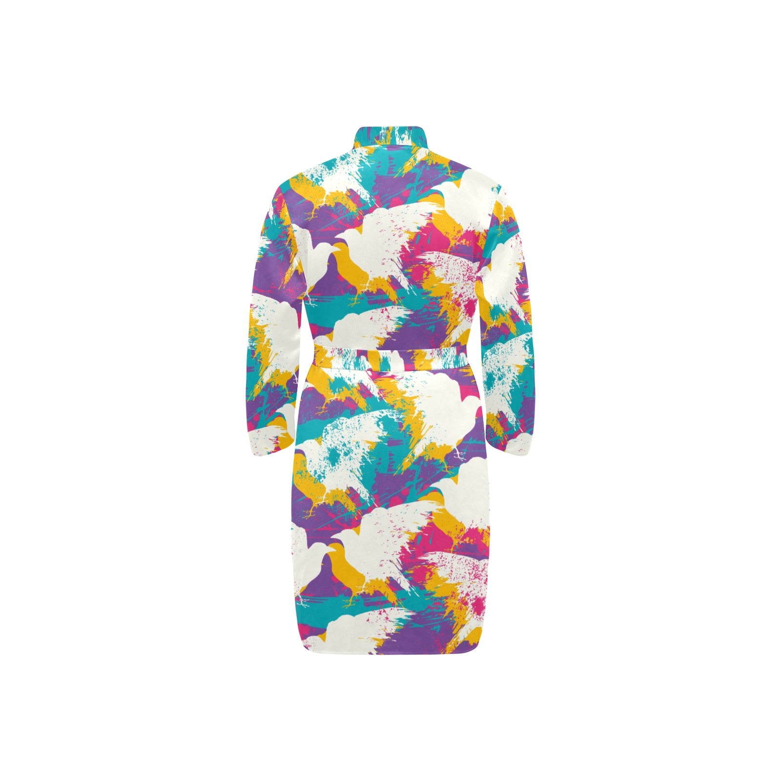 Colorful crow illustration pattern Men's Long Sleeve Belted Night Robe