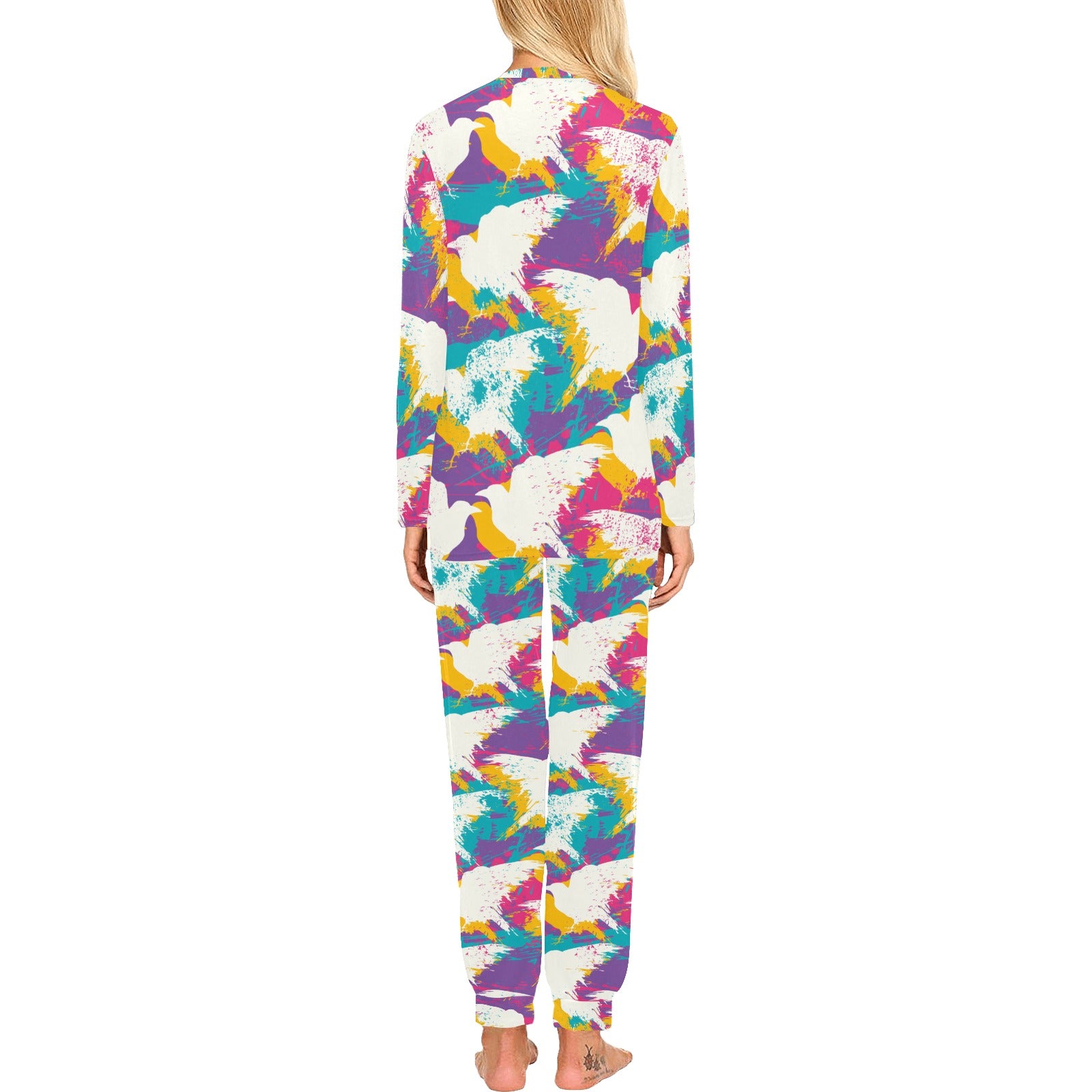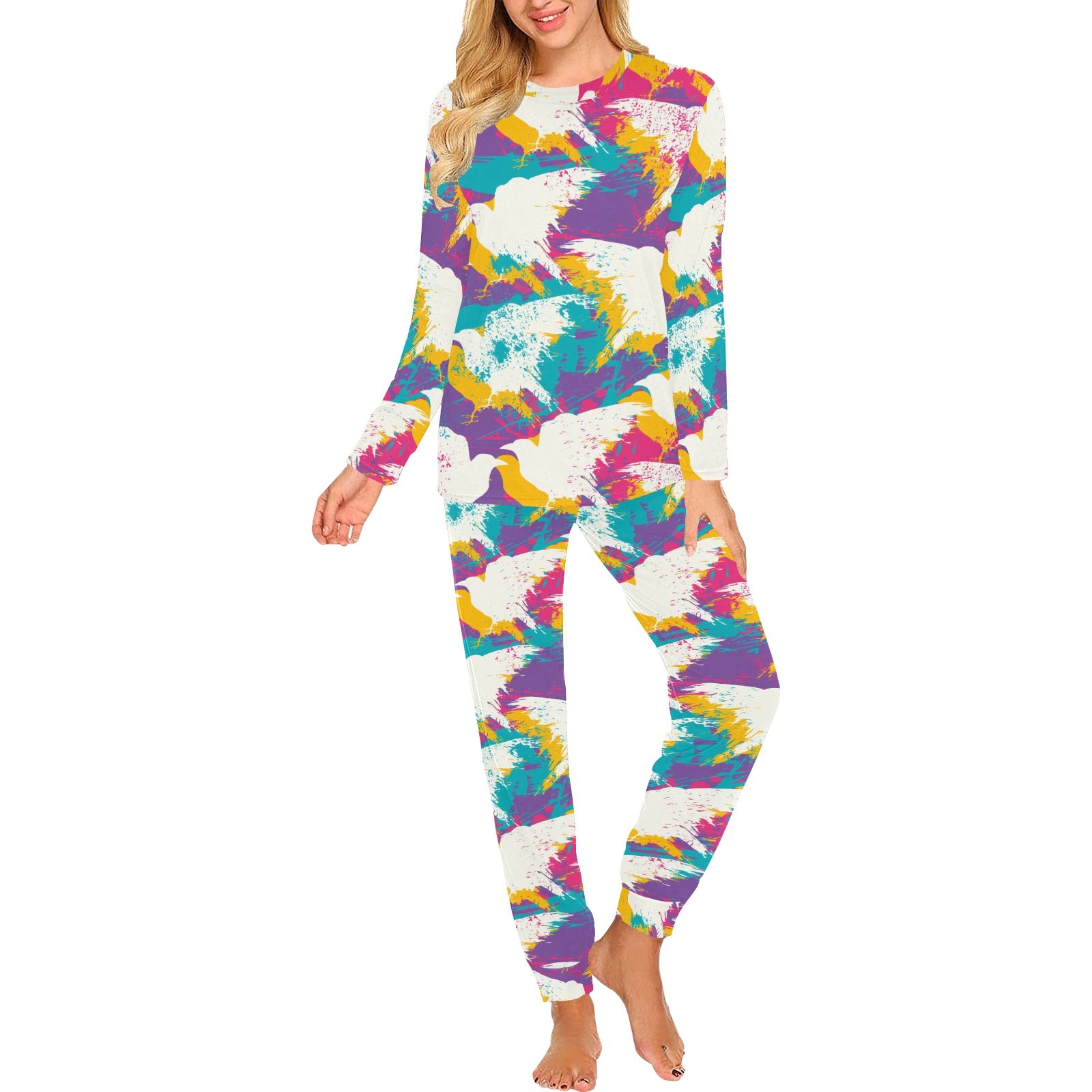 Colorful crow illustration pattern Women's All Over Print Pajama Set
