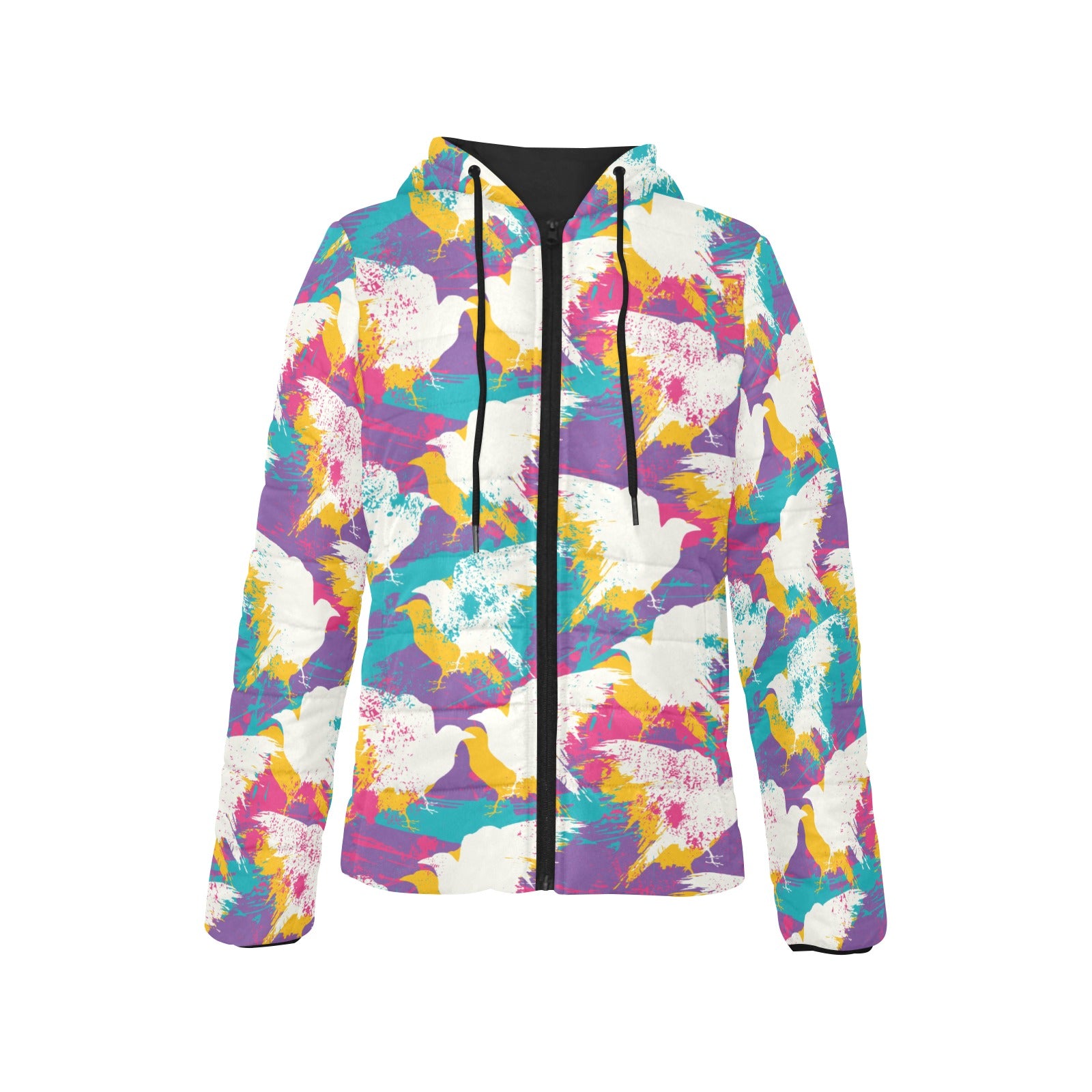 Colorful crow illustration pattern Women's Padded Hooded Jacket
