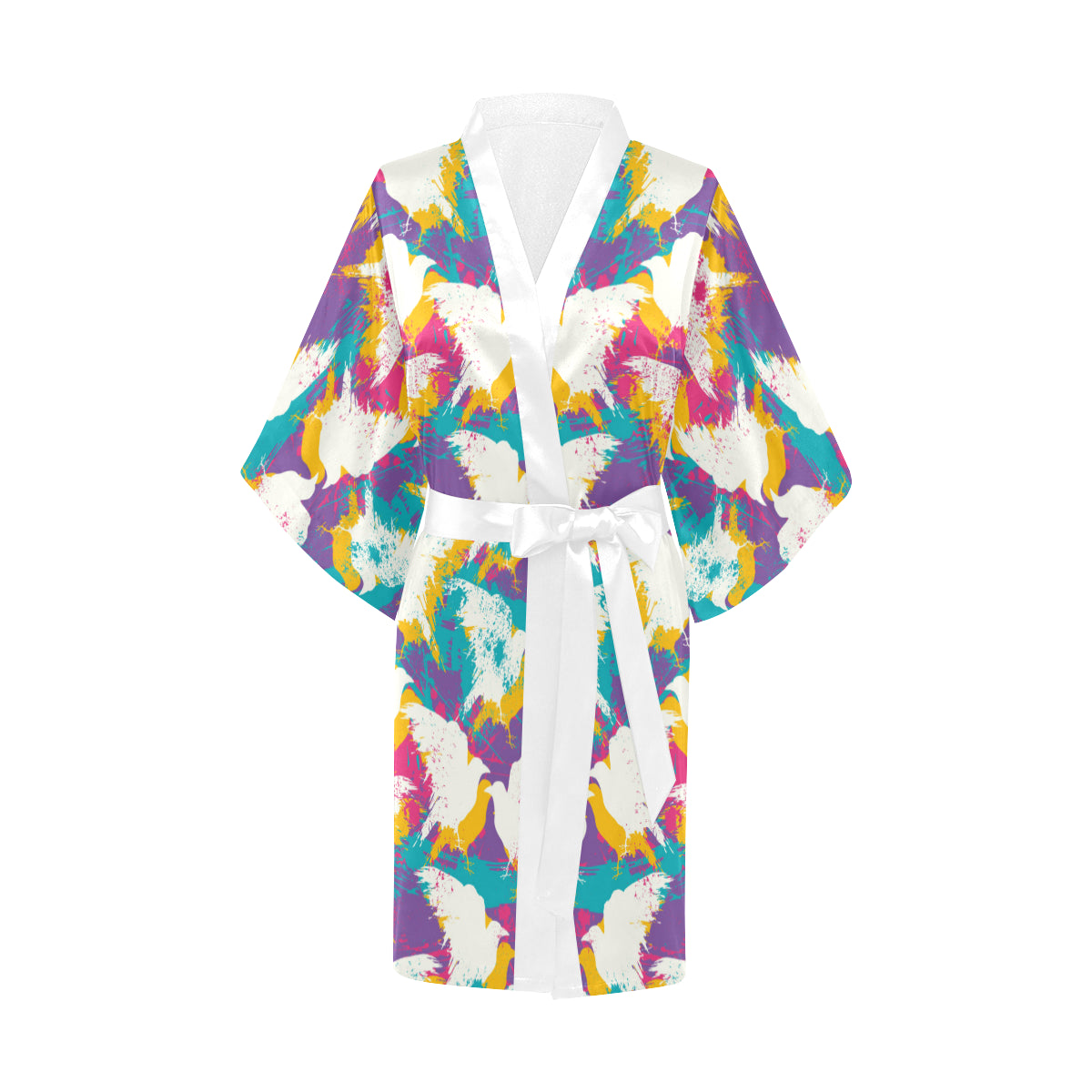 Colorful crow illustration pattern Women's Short Kimono Robe is a uniqued design and limited item. It made to order, hand printed, and sewn with love in our factory.
