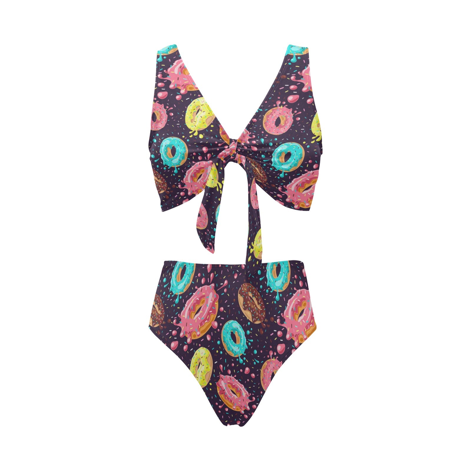 Colorful donut glaze pattern Chest Bowknot High Waisted Bikini Swimsuit