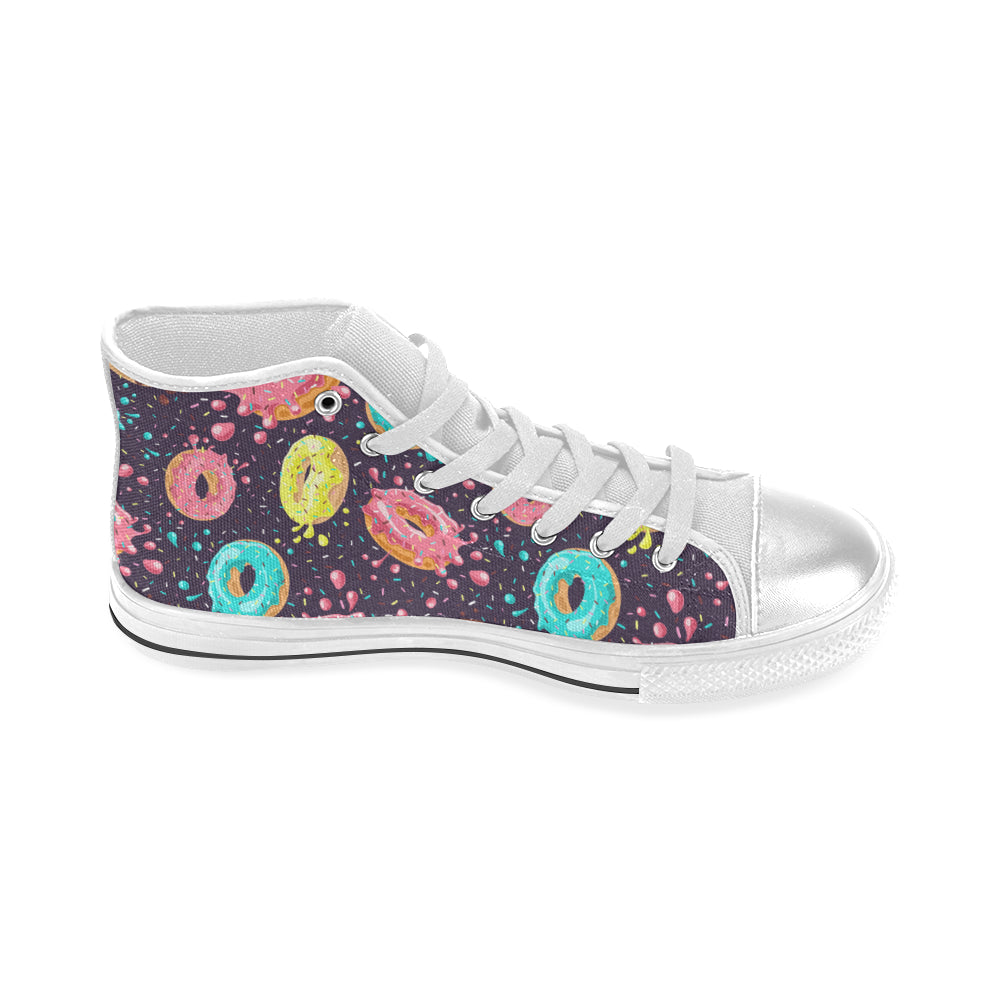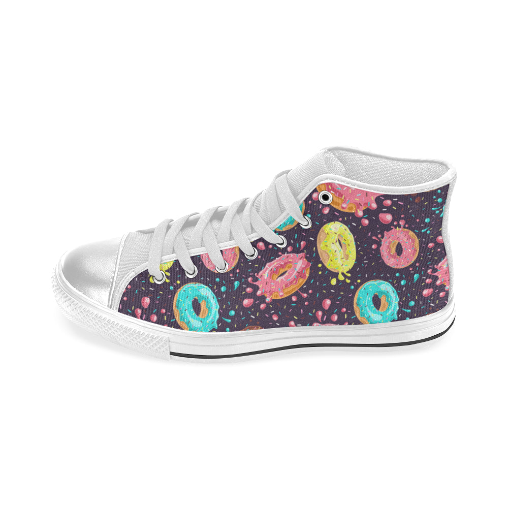 Colorful donut glaze pattern Women's High Top Canvas Shoes White