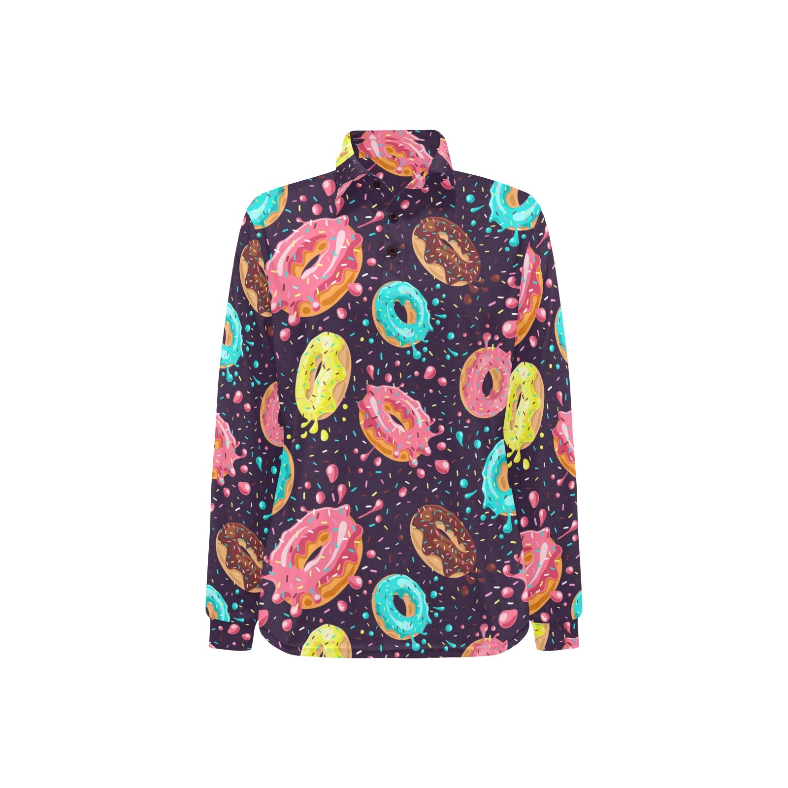 Colorful donut glaze pattern Women's Long Sleeve Polo Shirt