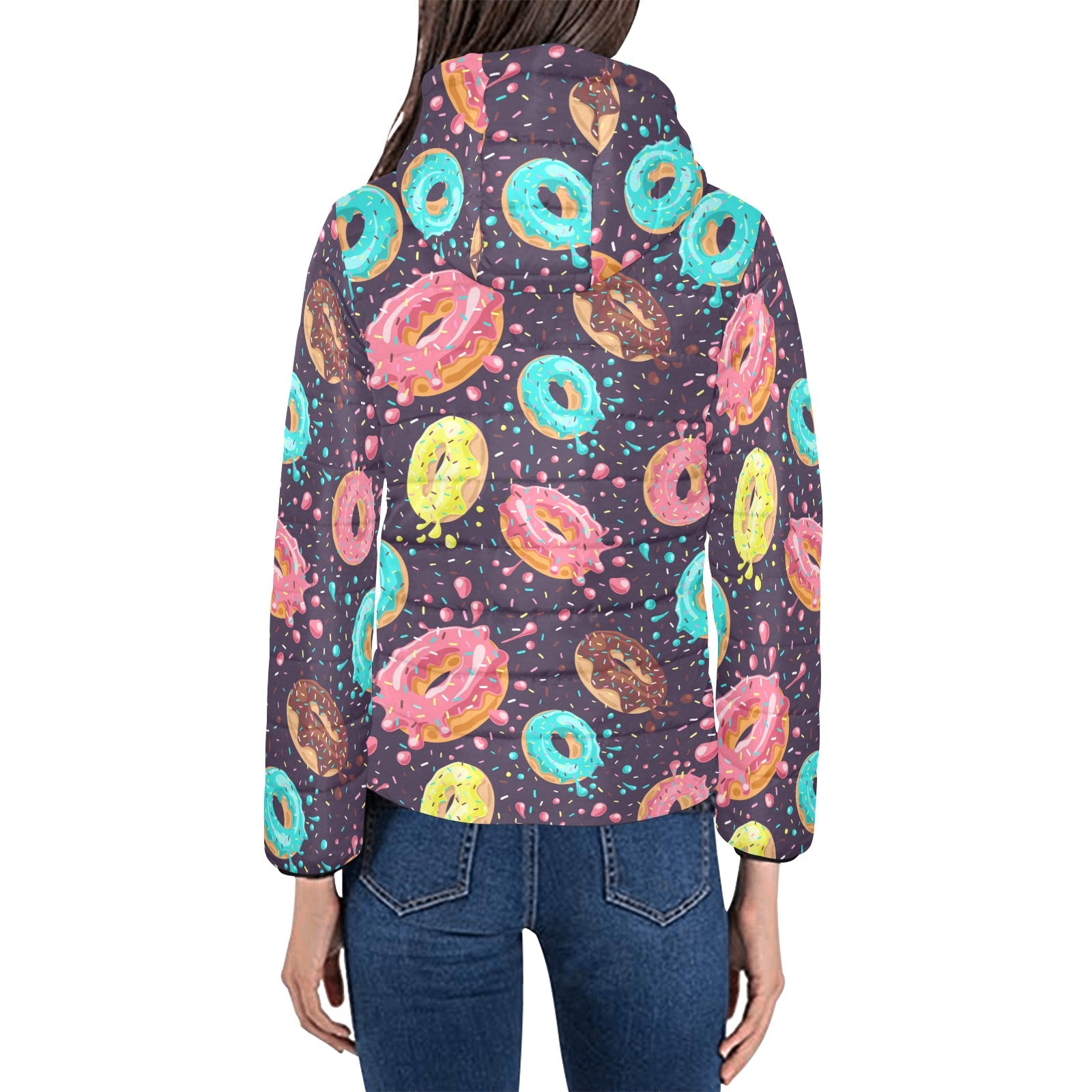 Colorful donut glaze pattern Women's Padded Hooded Jacket