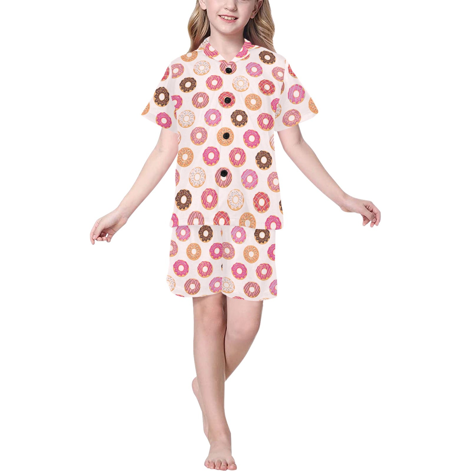 Colorful donut pattern Kids' Boys' Girls' V-Neck Short Pajama Set