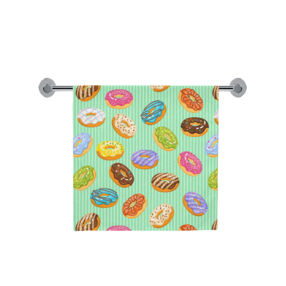 Colorful donut pattern green background Bath Towel 30"x56" is a uniqued design and limited item. It made to order, hand printed, and sewn with love in our factory.
