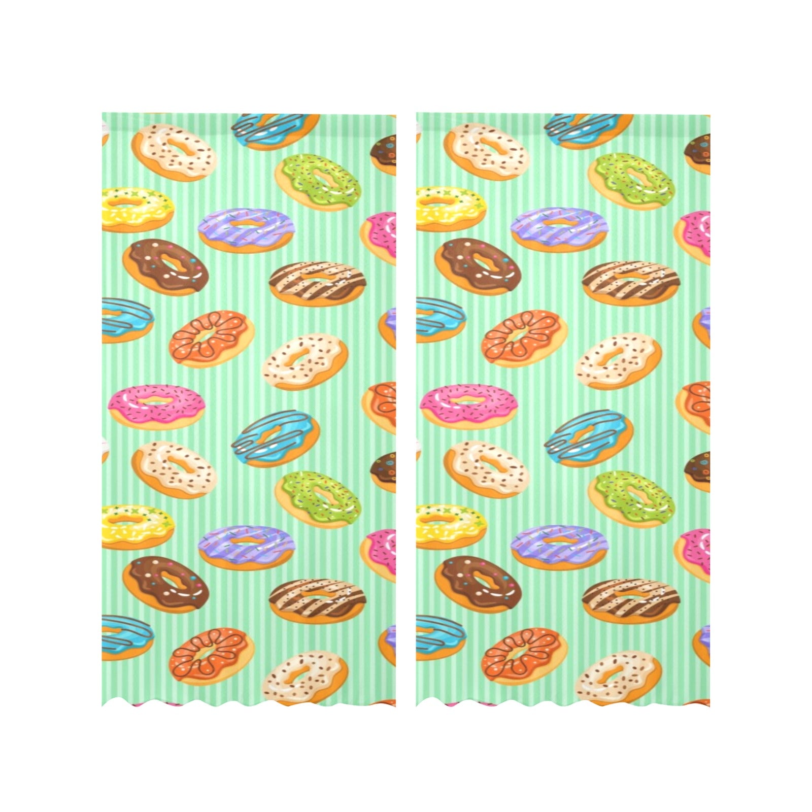 Colorful donut pattern green background Gauze Curtain