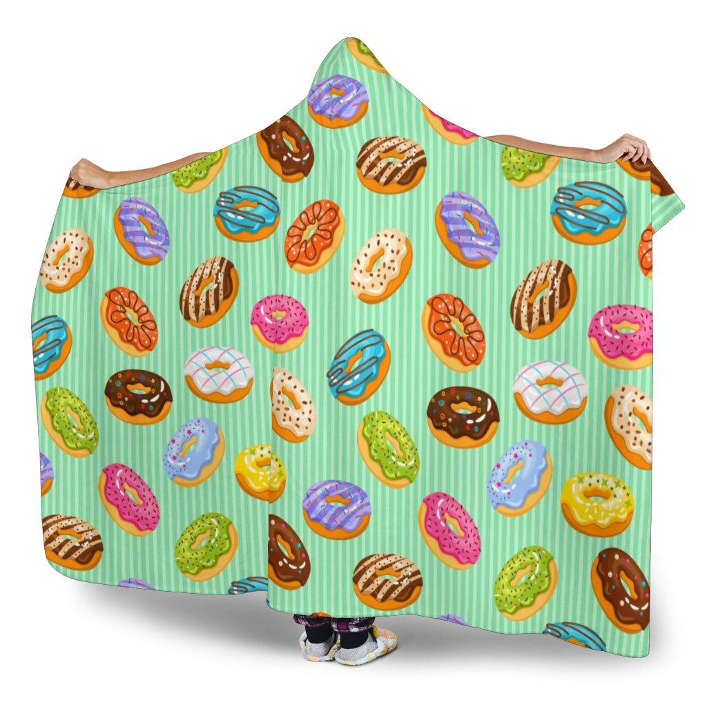 Colorful donut pattern green background Hooded Blanket are custom-made-to-order and handcrafted to the highest quality standards.