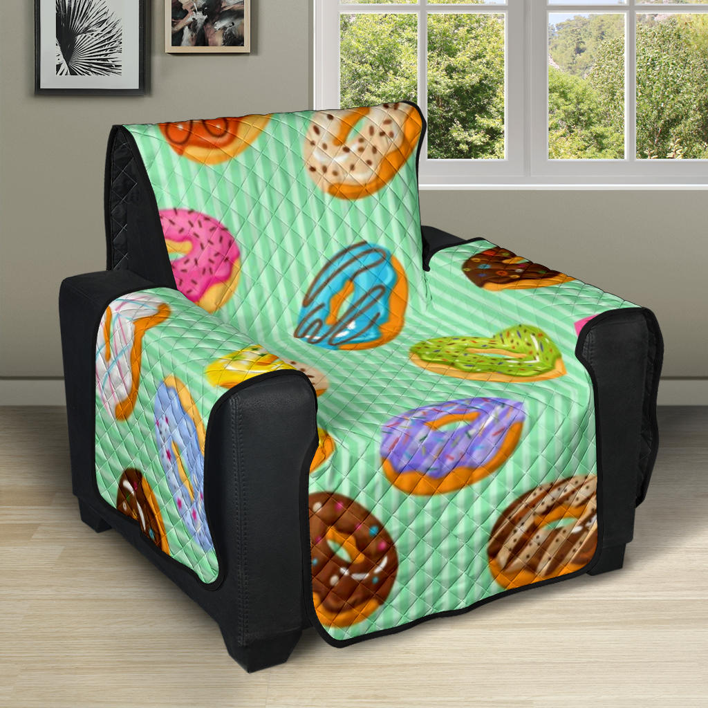 Colorful donut pattern green background Recliner Cover Protector