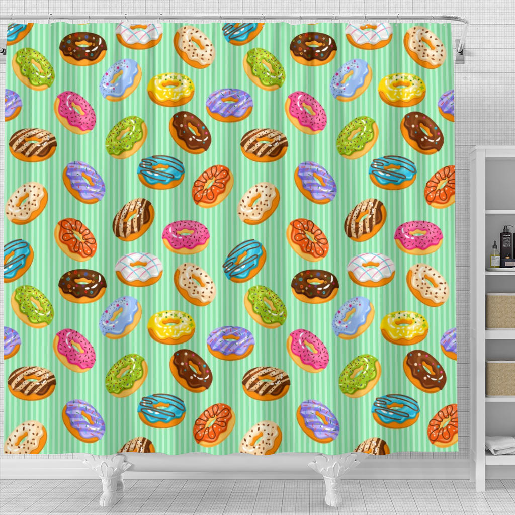 Colorful Donut Pattern Green Background Shower Curtain Fulfilled In US