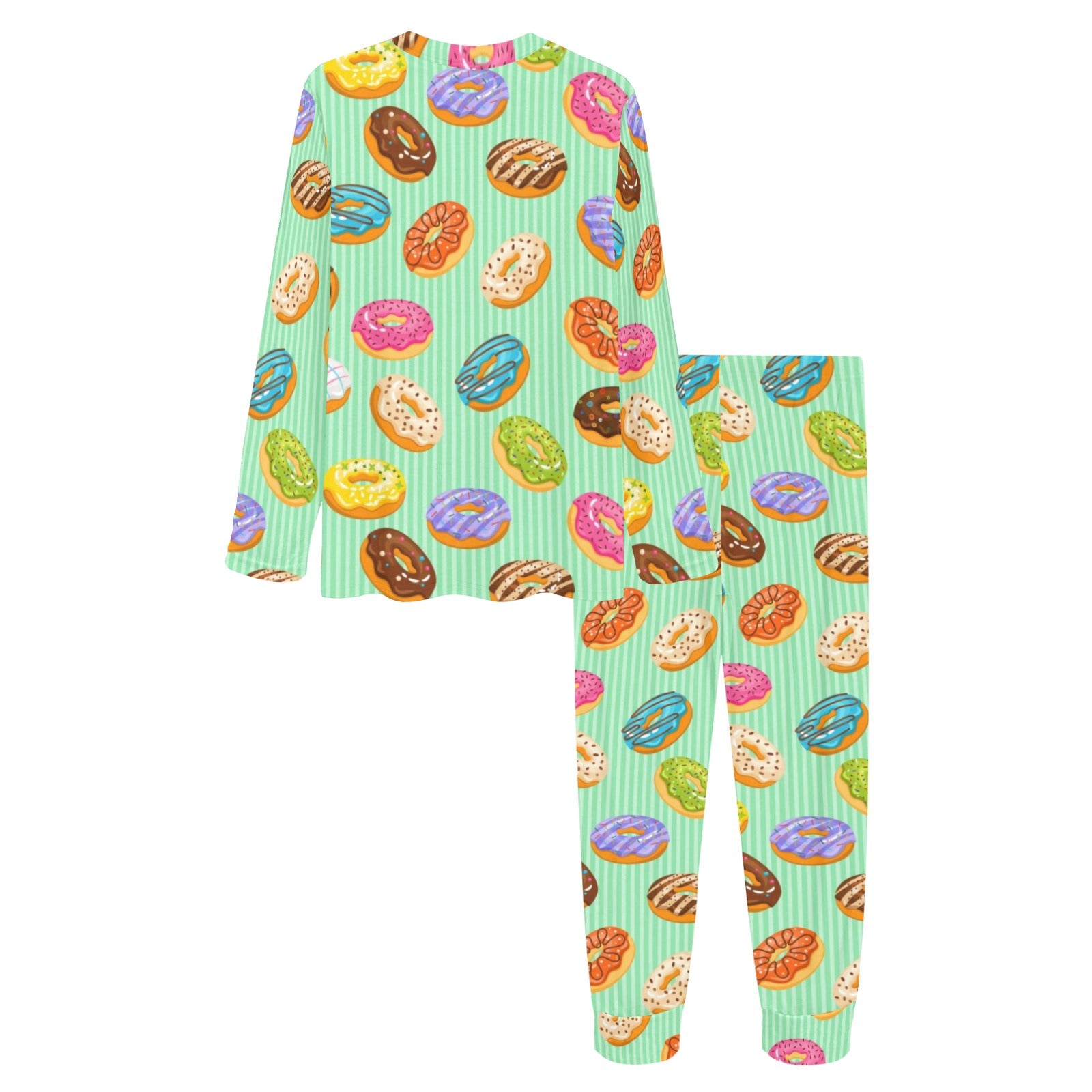 Colorful donut pattern green background Women's All Over Print Pajama Set