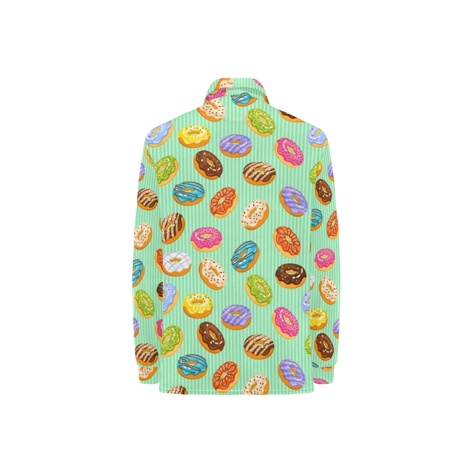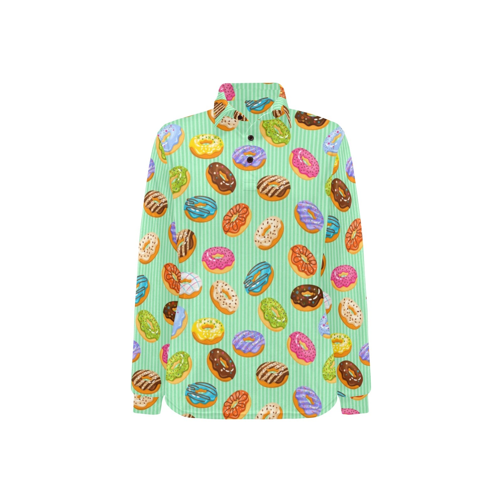 Colorful donut pattern green background Women's Long Sleeve Polo Shirt