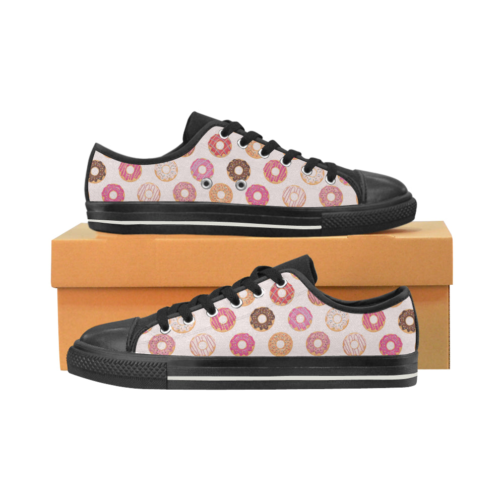 Colorful donut pattern Men's Low Top Canvas Shoes Black