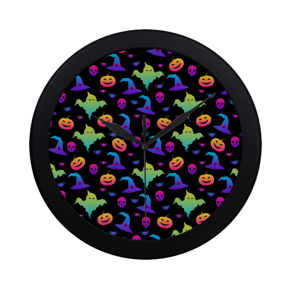 Colorful halloween background Elegant Black Wall Clock is a uniqued design and limited item. It made to order, hand printed, and sewn with love in our factory.