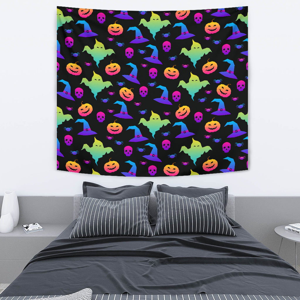 Colorful halloween background Tapestry is a uniqued design and limited item. It made to order, hand printed, and sewn with love in our factory.