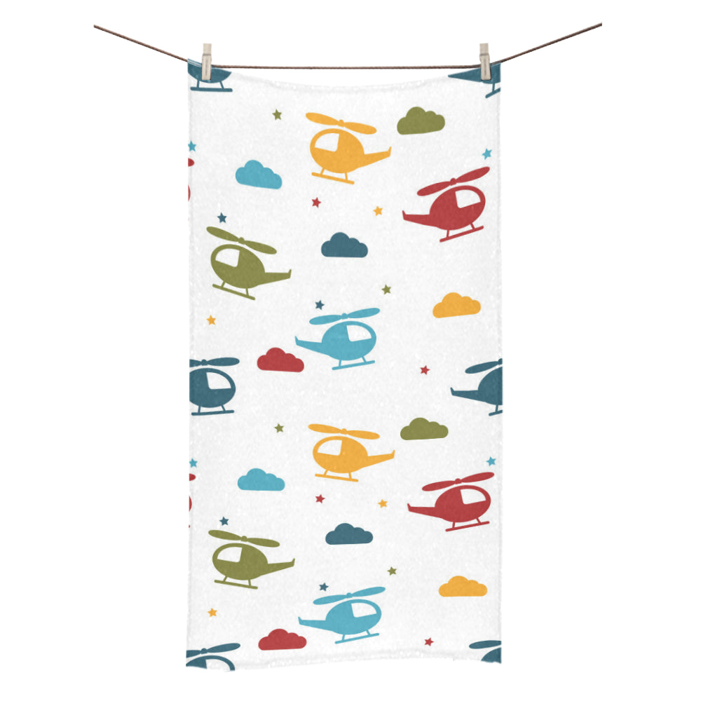 Colorful helicopter pattern Bath Towel 30"x56" is a uniqued design and limited item. It made to order, hand printed, and sewn with love in our factory.
