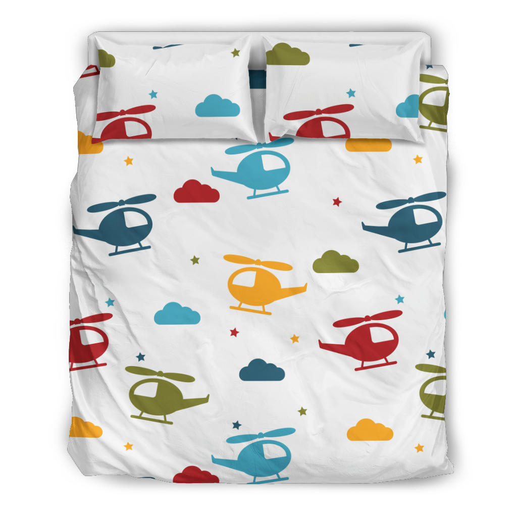 Colorful helicopter pattern Bedding Set is a uniqued design and limited item. It made to order, hand printed, and sewn with love in our factory.