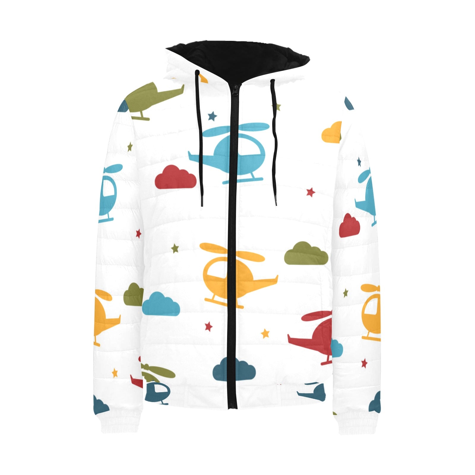 Colorful helicopter pattern Men's Padded Hooded Jacket