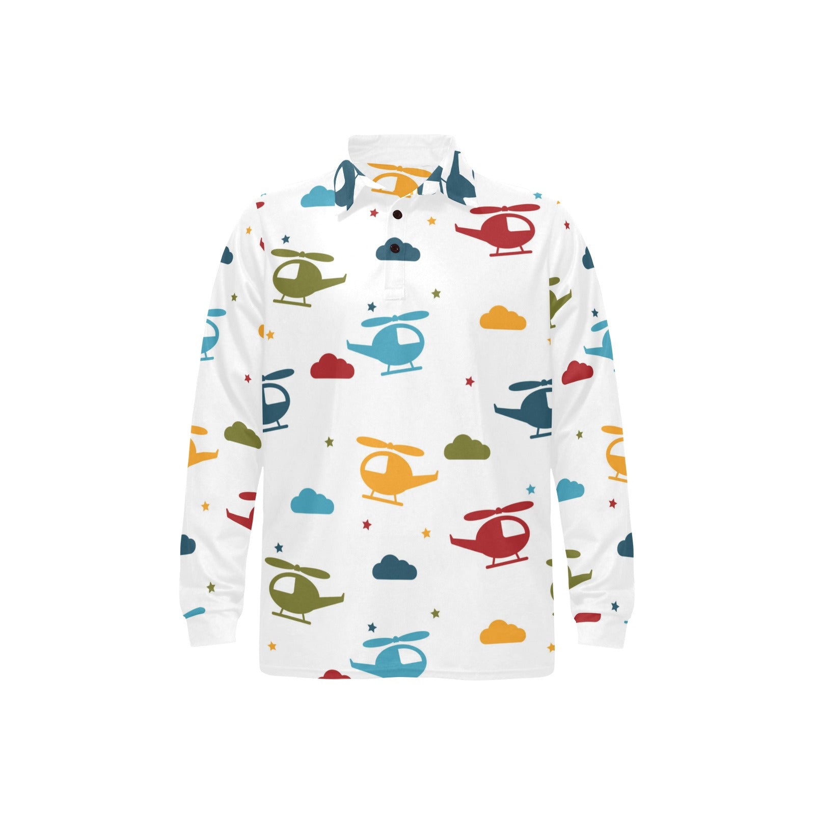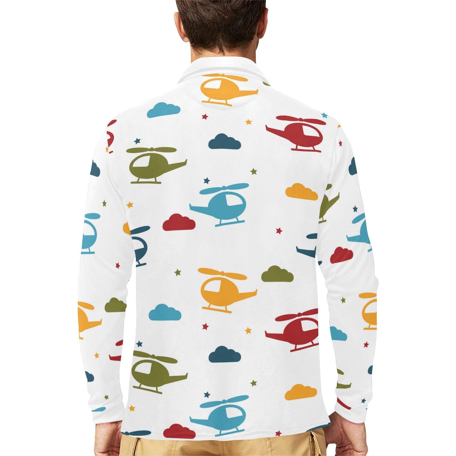 Colorful helicopter pattern Men's Long Sleeve Polo Shirt