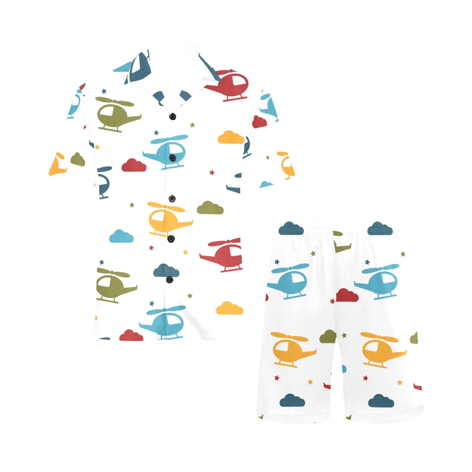 Colorful helicopter pattern Men's V-Neck Short Pajama Set