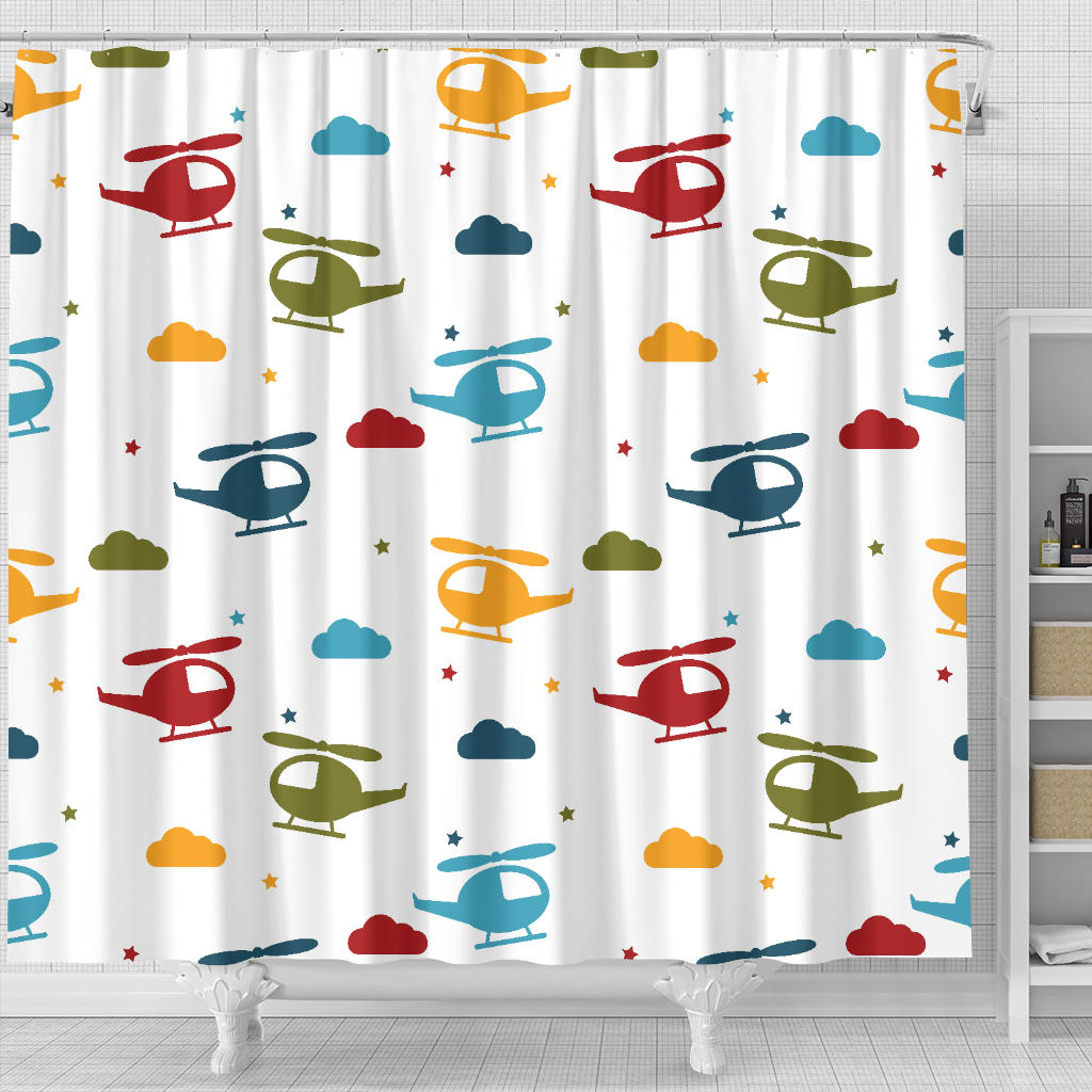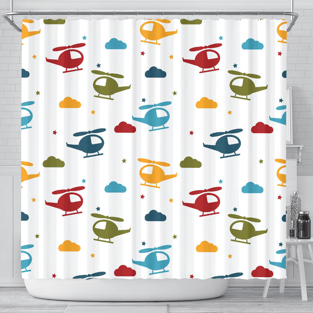 Colorful Helicopter Pattern Shower Curtain Fulfilled In US
