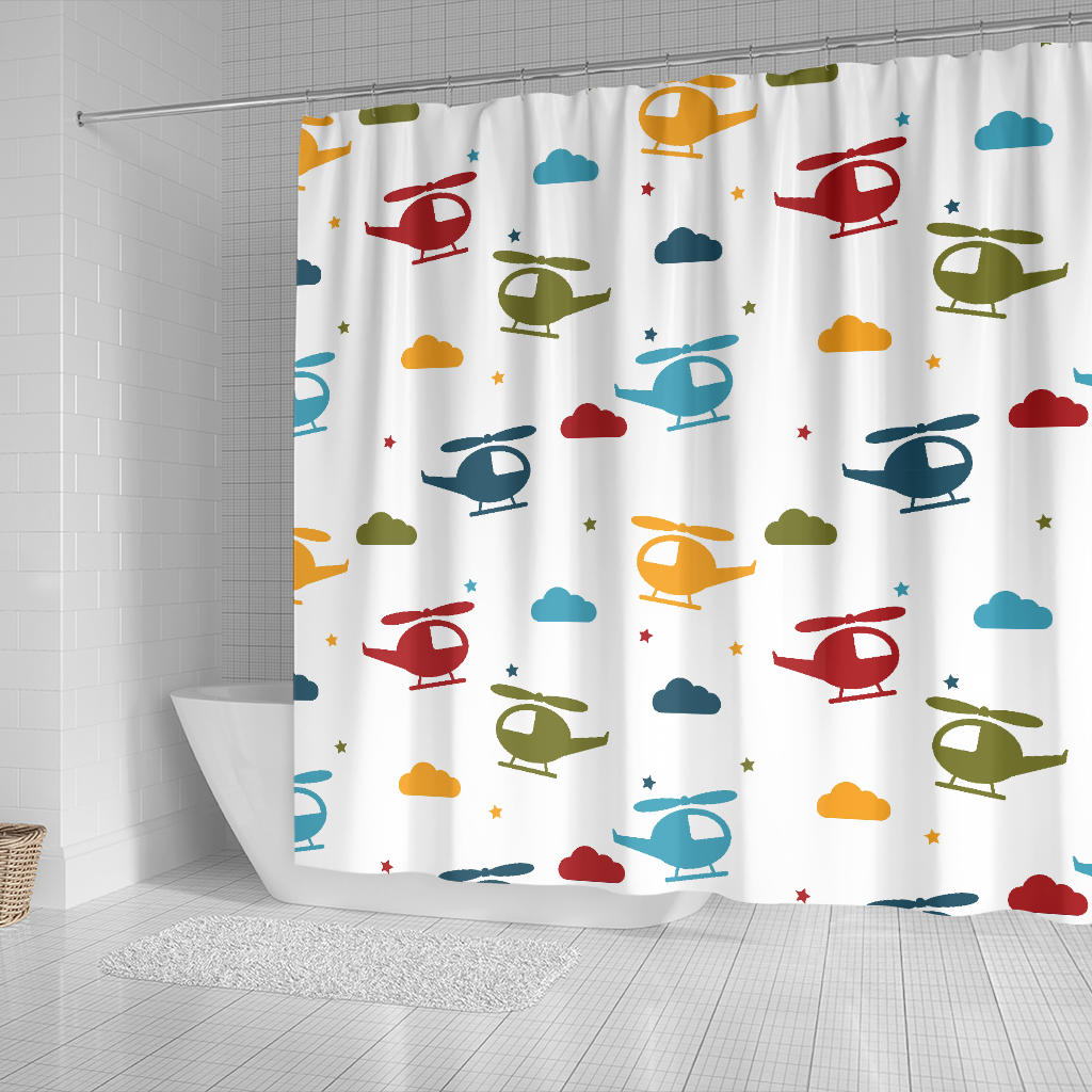 Colorful helicopter pattern Shower Curtain is a uniqued design and limited item. It made to order, hand printed, and sewn with love in our factory.