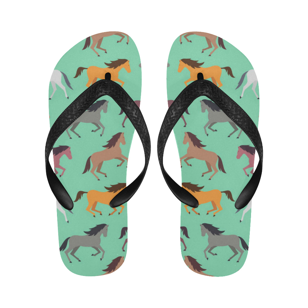 Colorful horses pattern Unisex Flip Flops is a uniqued design and limited item. It made to order, hand printed, and sewn with love in our factory.