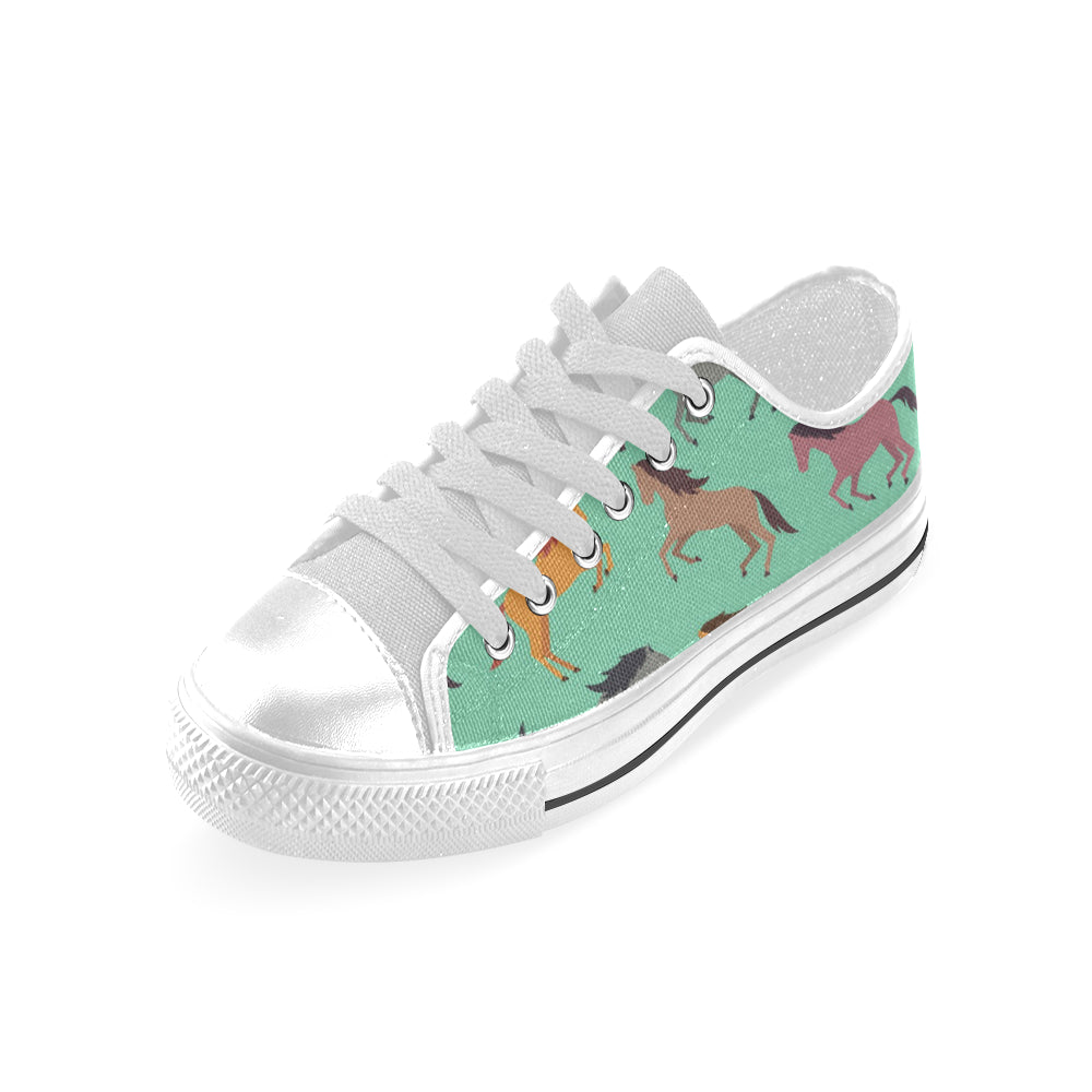 Colorful horses pattern Men's Low Top Canvas Shoes White