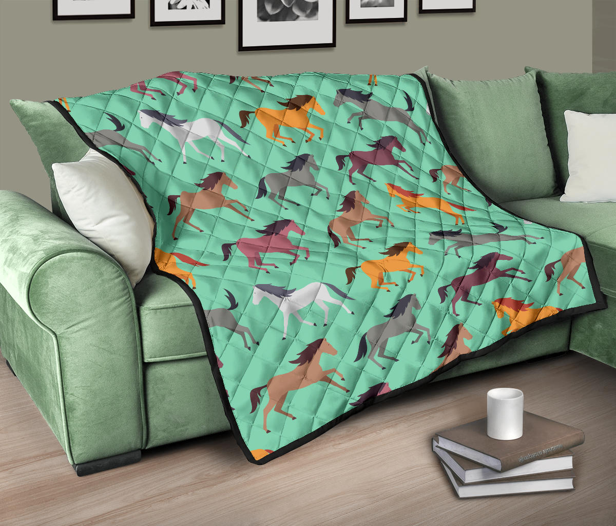 Colorful Horses Pattern Premium Quilt is a uniqued design and limited item. It made to order, hand printed, and sewn with love in our factory.