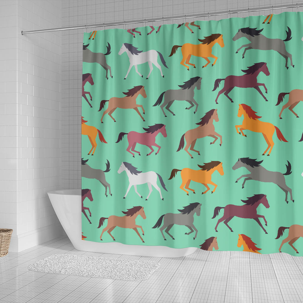 Colorful horses pattern Shower Curtain is a uniqued design and limited item. It made to order, hand printed, and sewn with love in our factory.