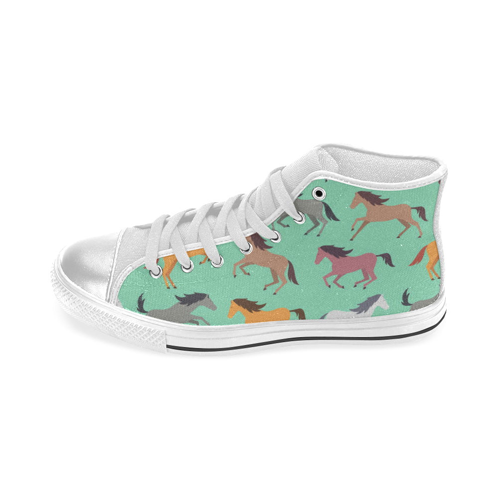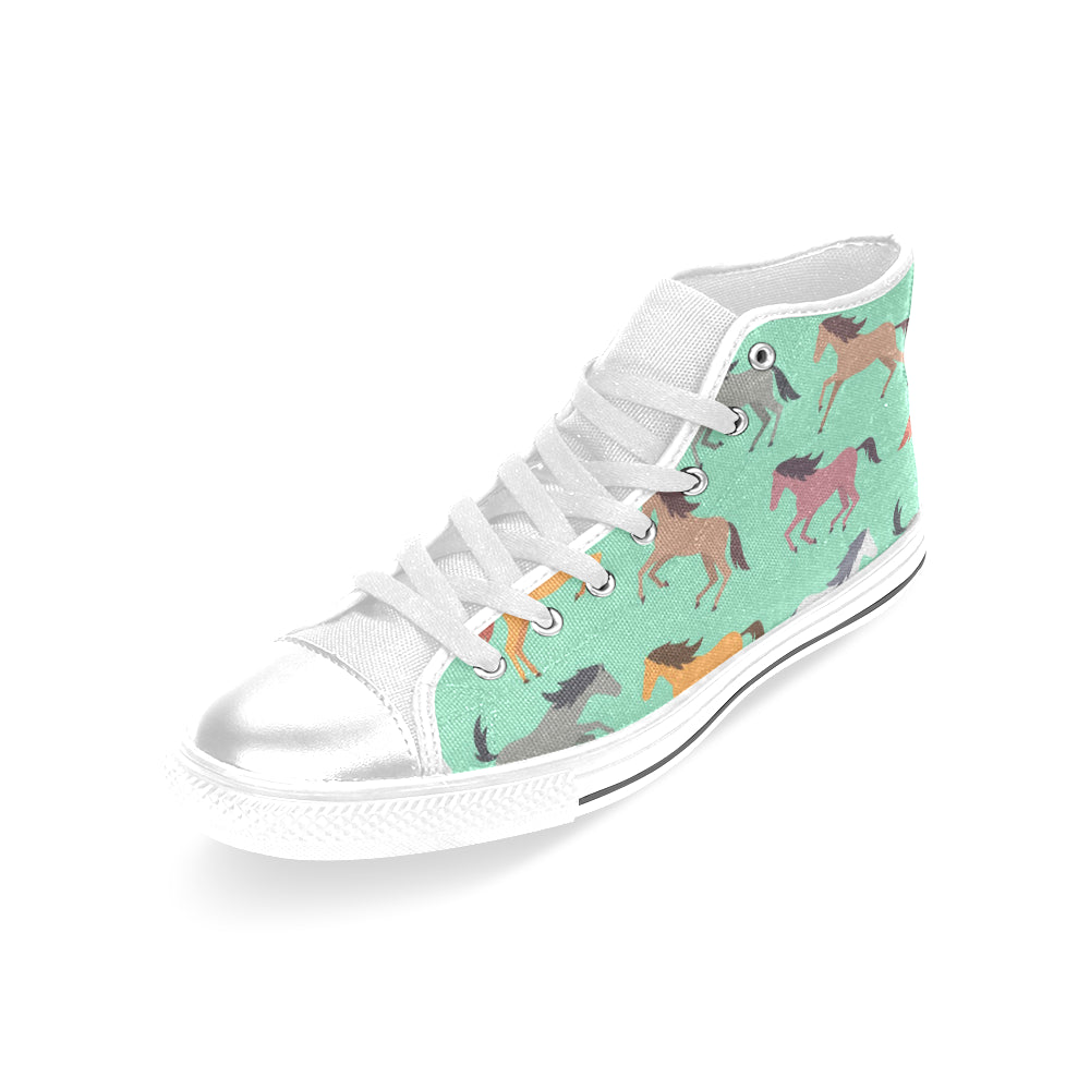 Colorful horses pattern Women's High Top Canvas Shoes White