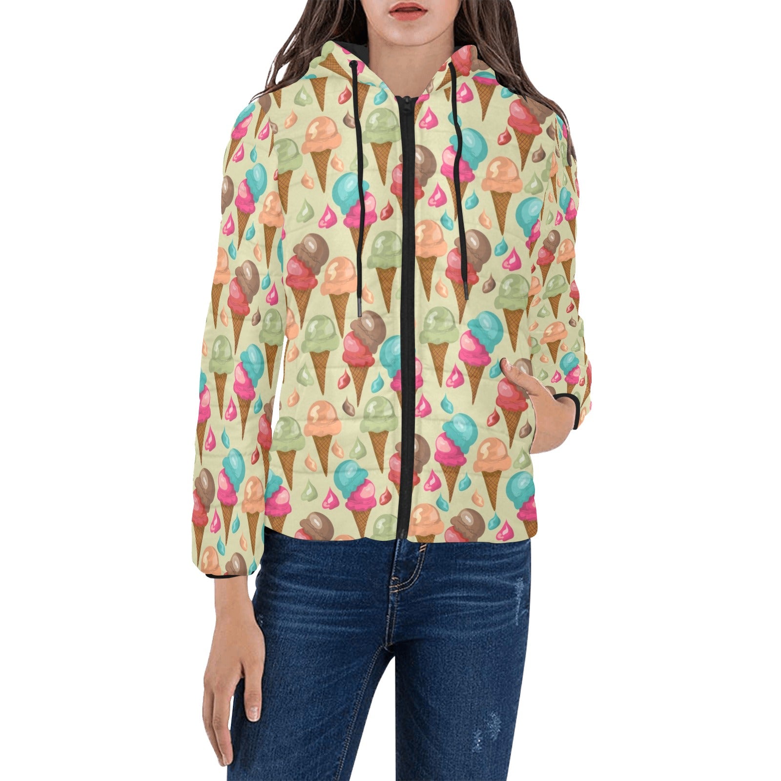 Colorful ice cream pattern Women's Padded Hooded Jacket
