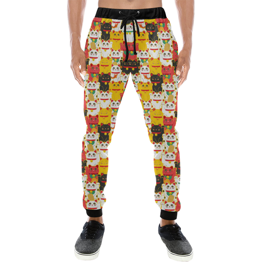 Colorful Maneki neko cat pattern Unisex Casual Sweatpants