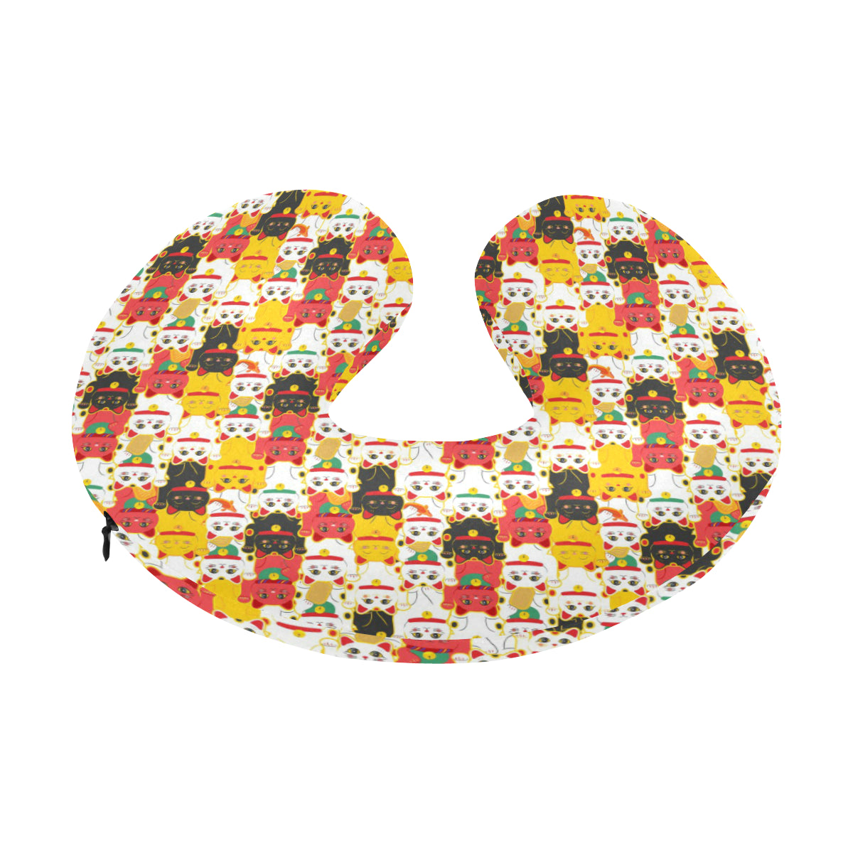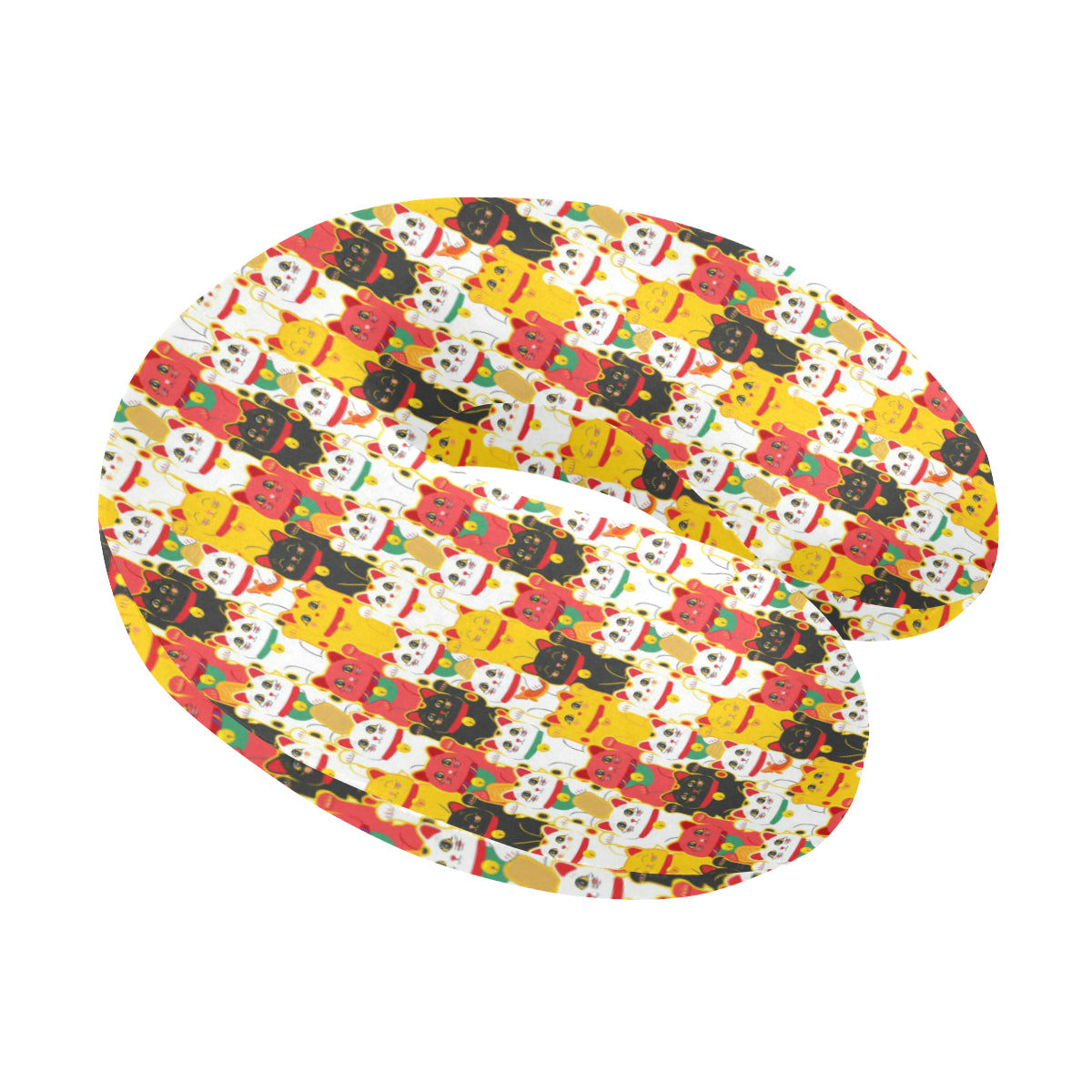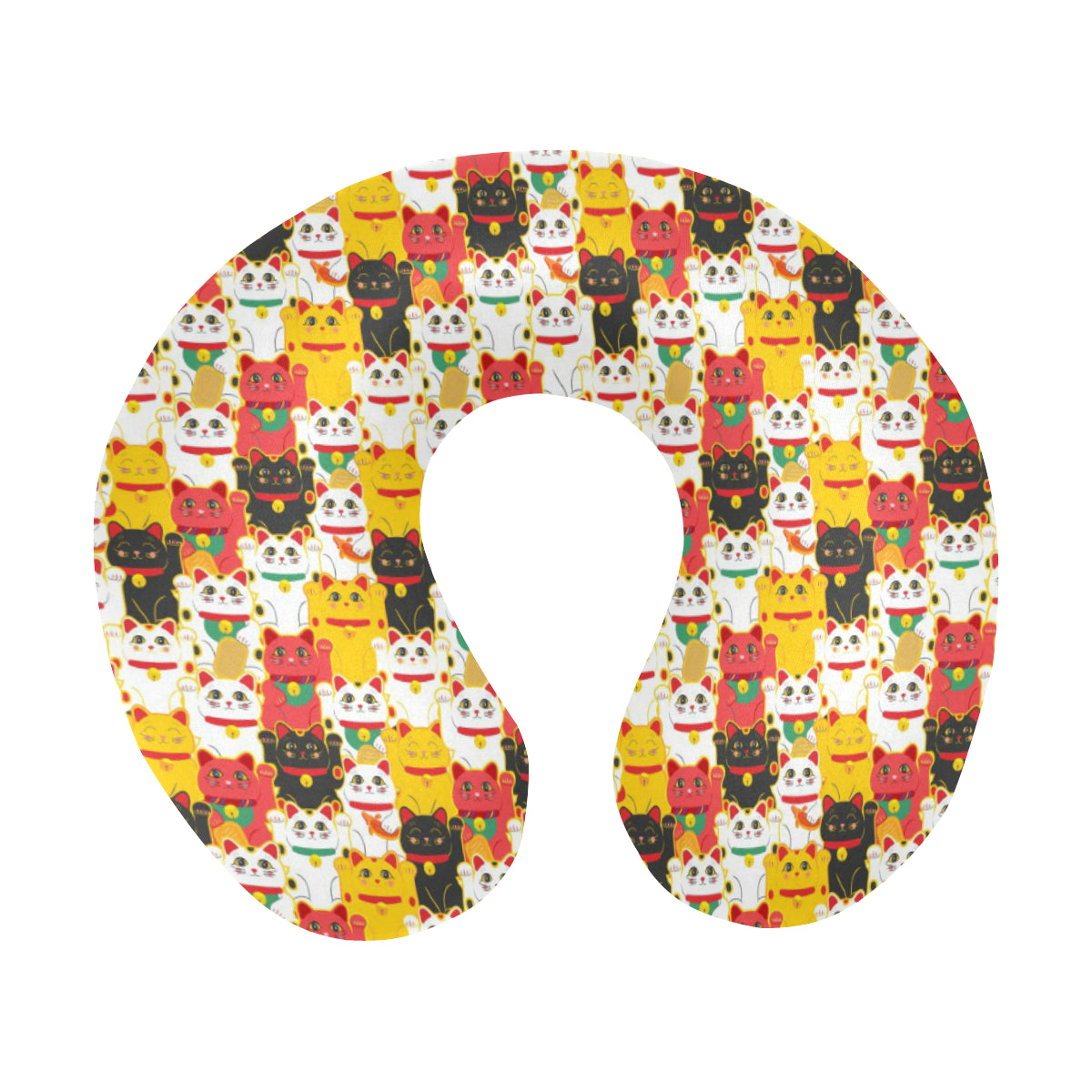 Colorful Maneki neko cat pattern U-Shaped Travel Neck Pillow