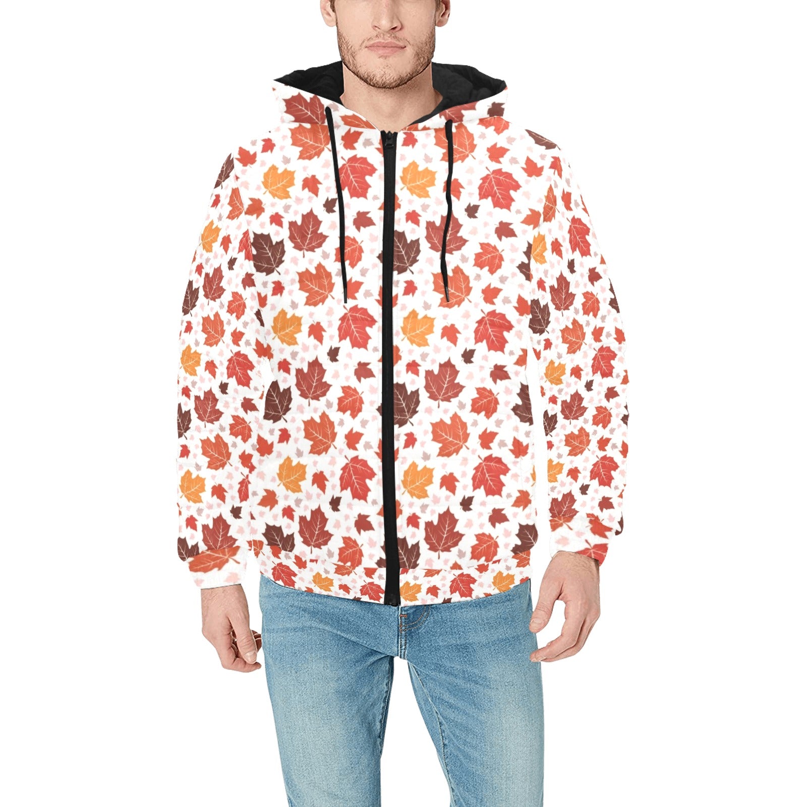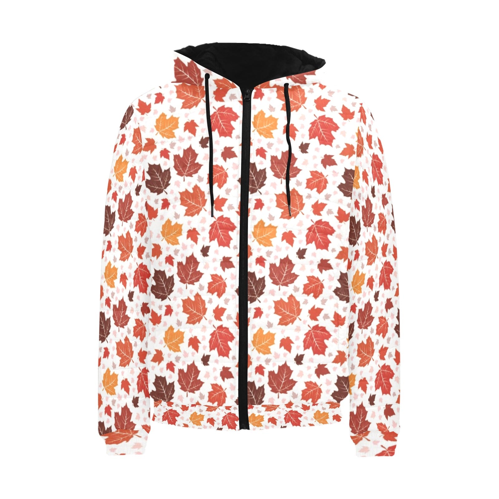 Colorful Maple Leaf pattern Men's Padded Hooded Jacket