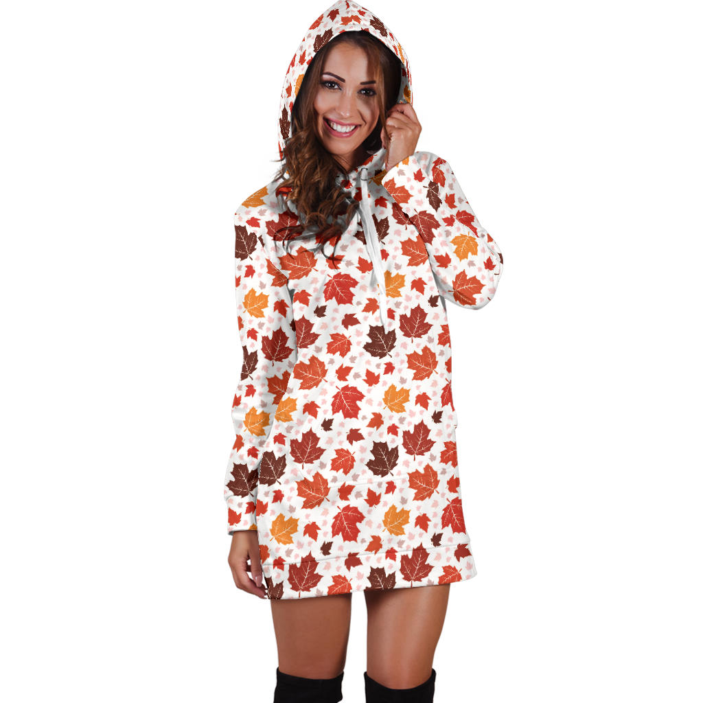 Colorful Maple Leaf pattern Women's Hoodie Dress is a uniqued design and limited item. It made to order, hand printed, and sewn with love in our factory.